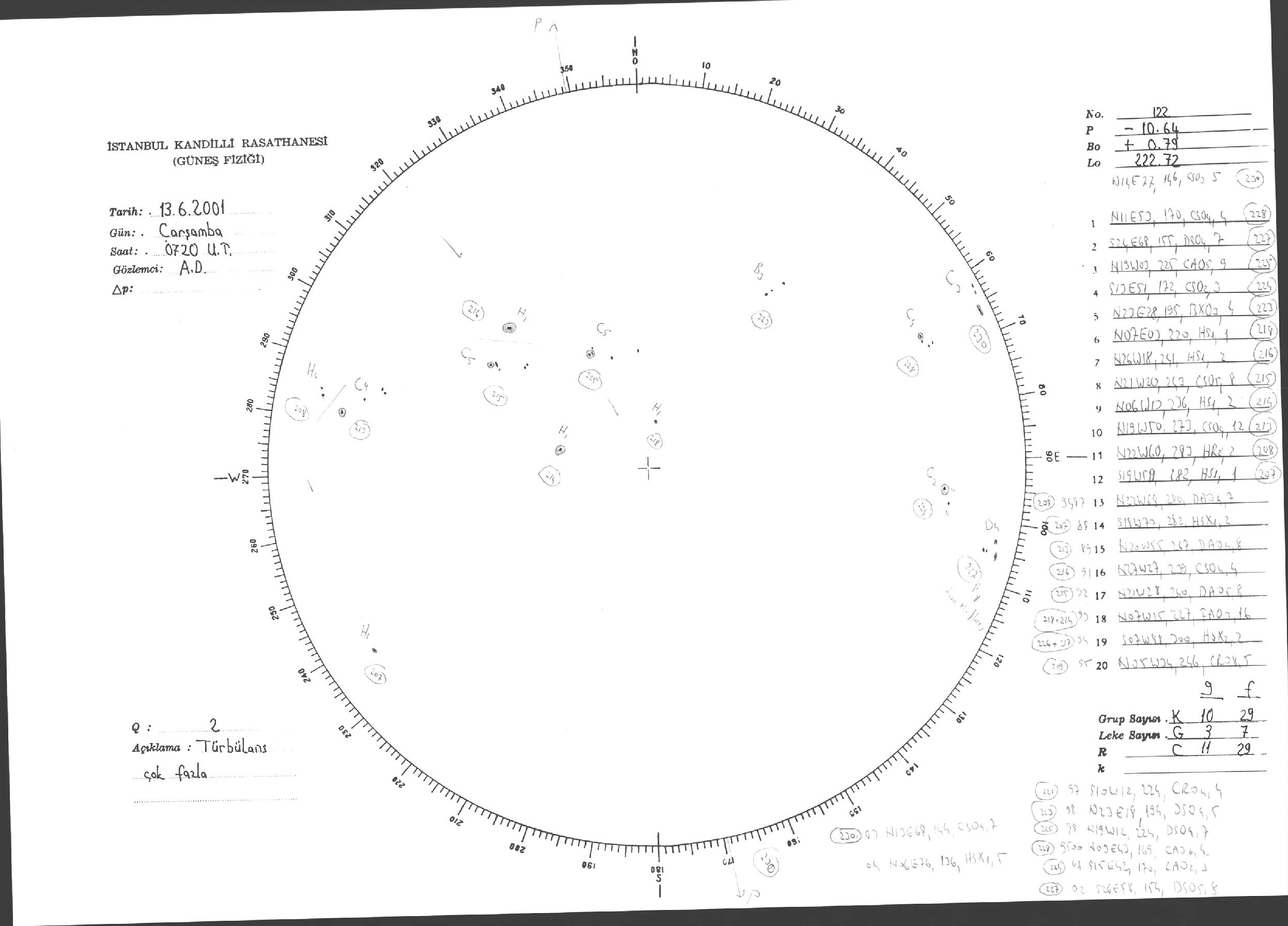 Güneş Lekesi Çizimi - 13.06.2001