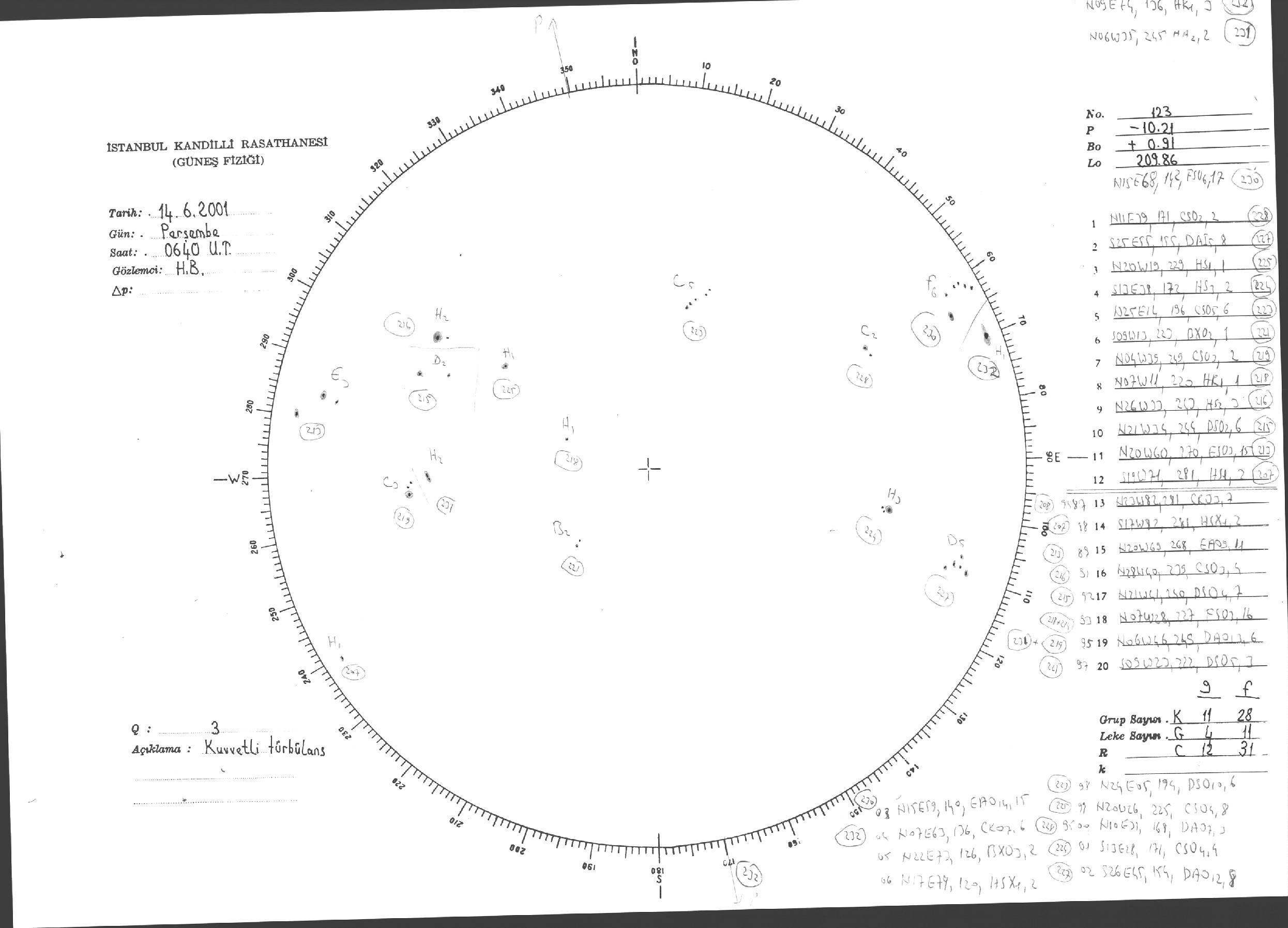 Güneş Lekesi Çizimi - 14.06.2001