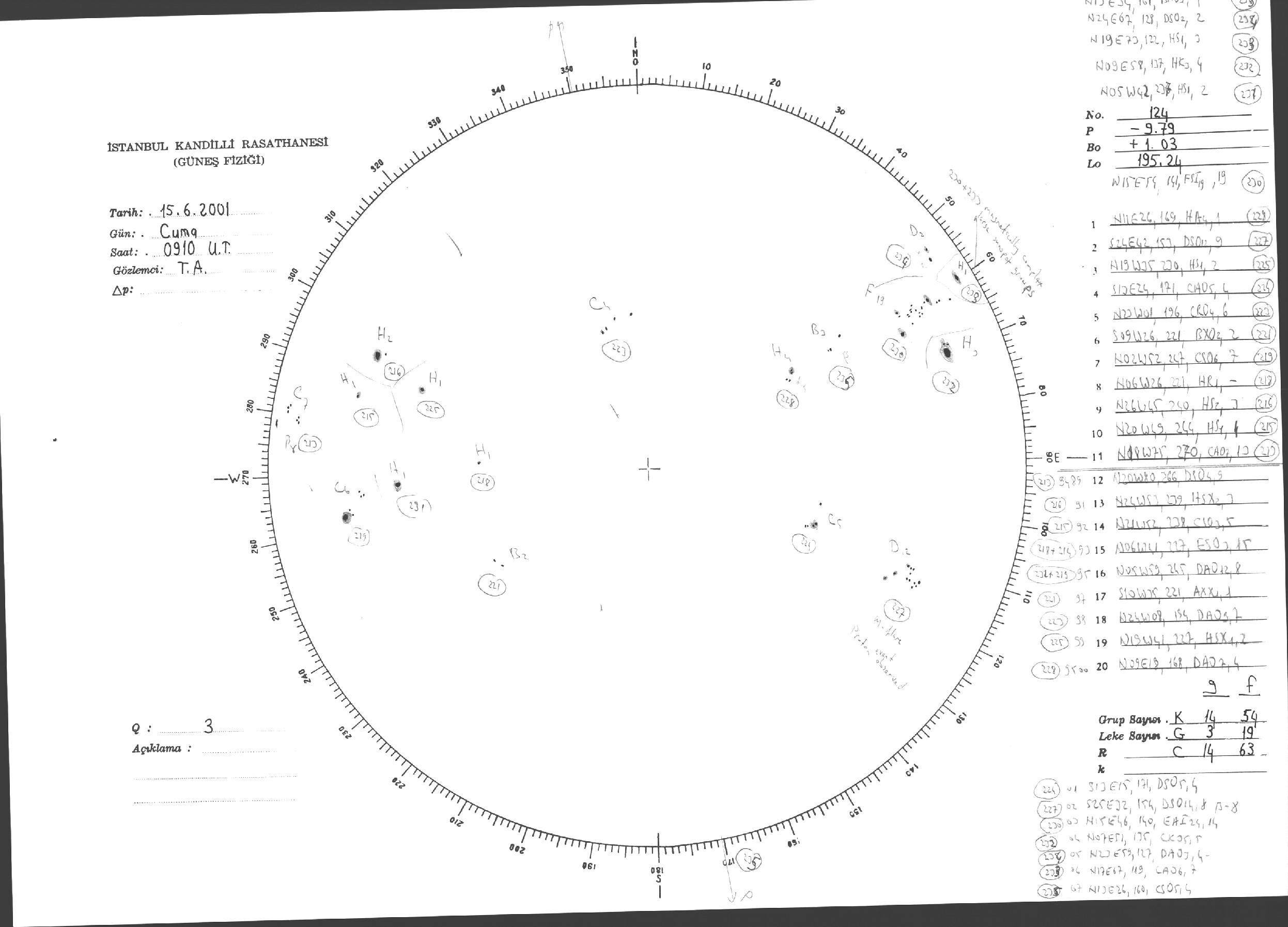 Güneş Lekesi Çizimi - 15.06.2001