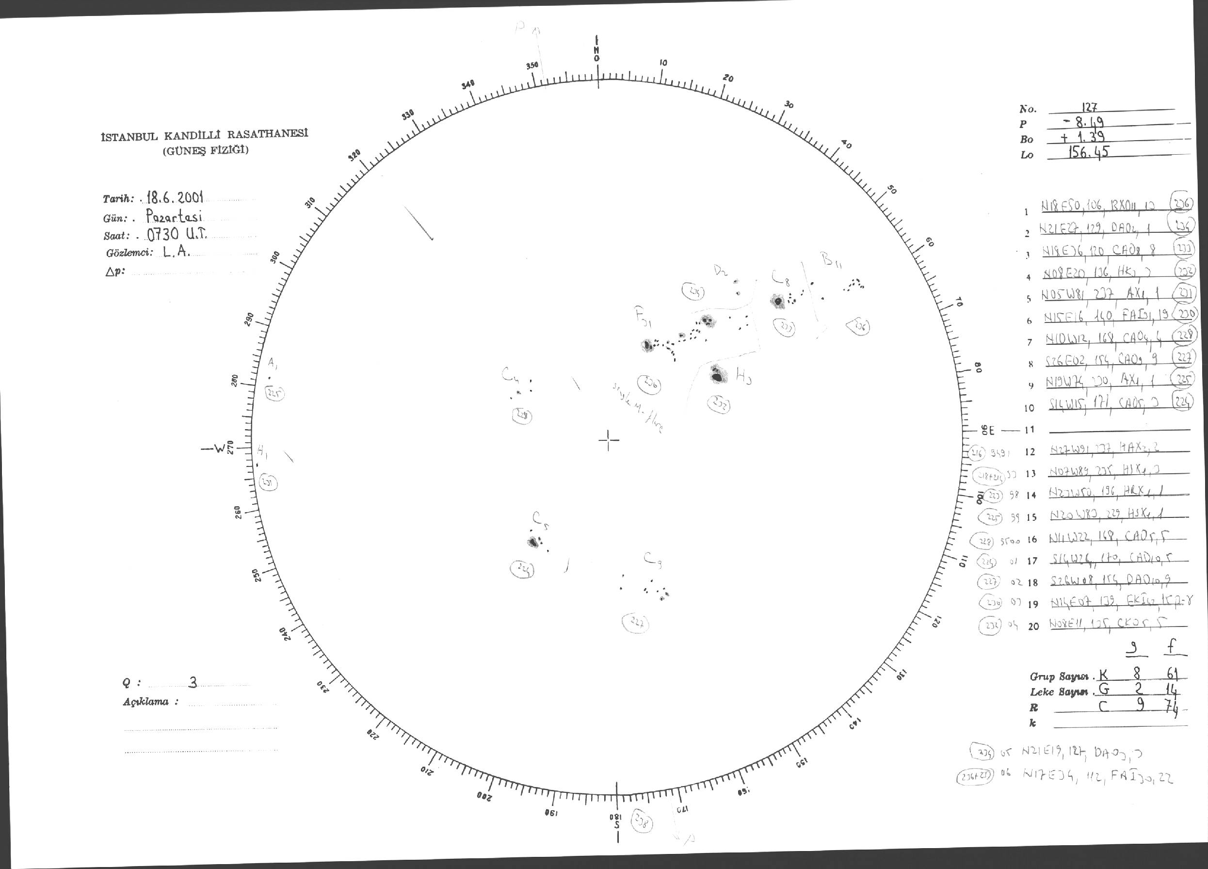 Güneş Lekesi Çizimi - 18.06.2001