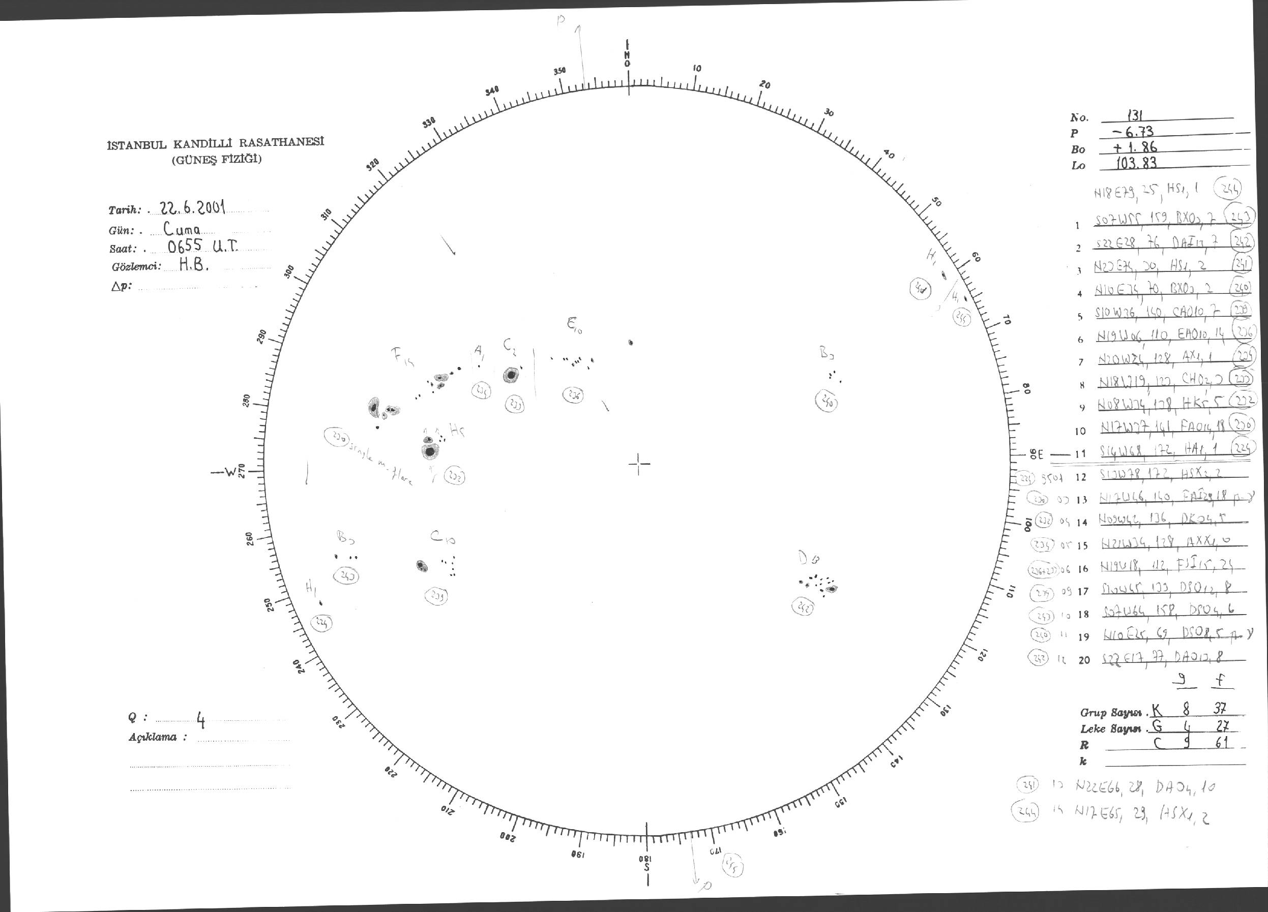 Güneş Lekesi Çizimi - 22.06.2001