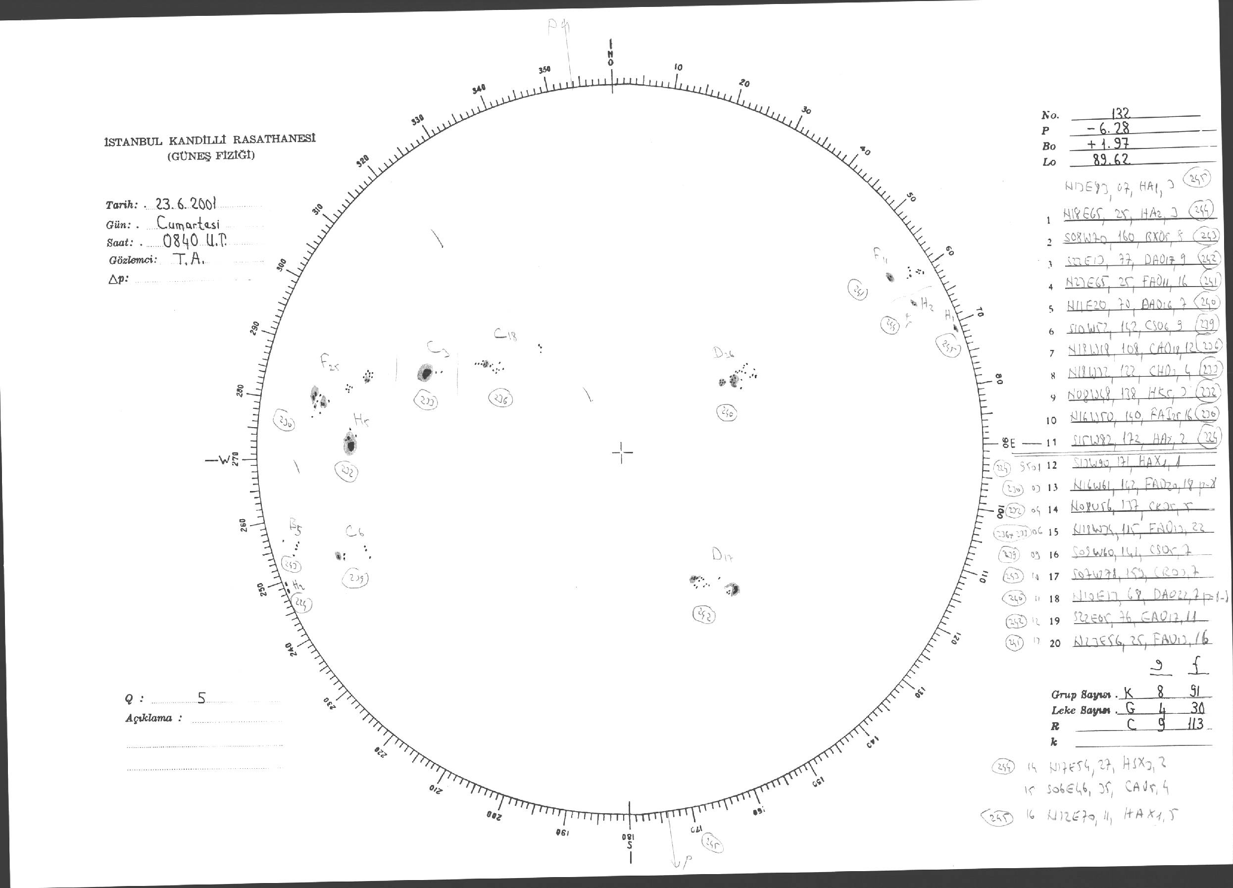Güneş Lekesi Çizimi - 23.06.2001