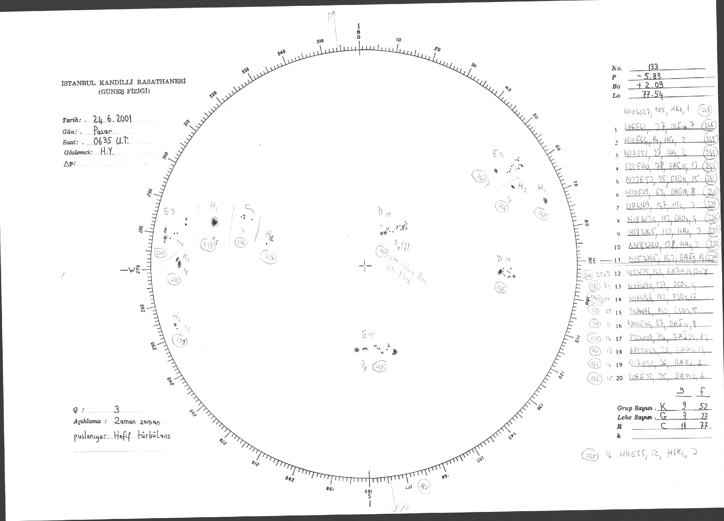 Güneş Lekesi Çizimi - 24.06.2001