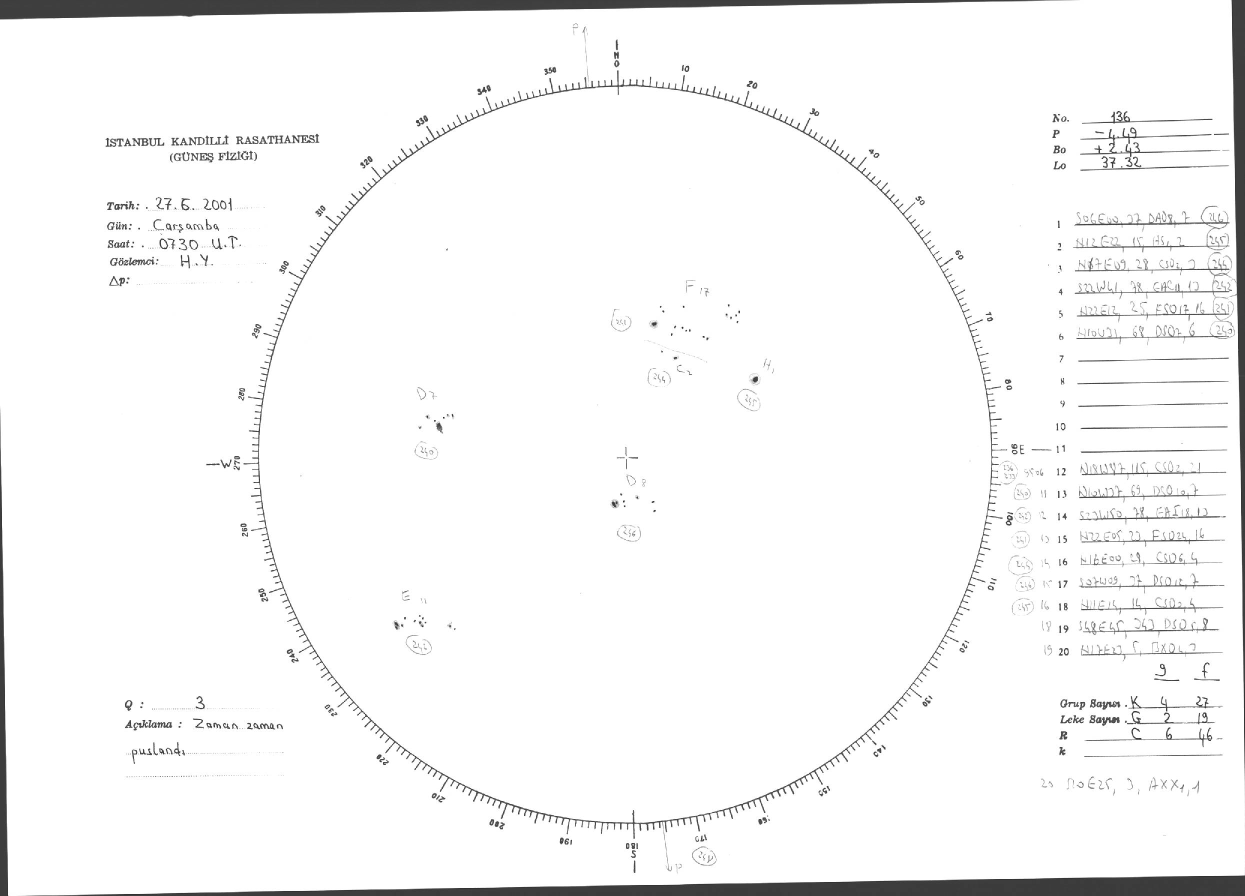 Güneş Lekesi Çizimi - 27.06.2001