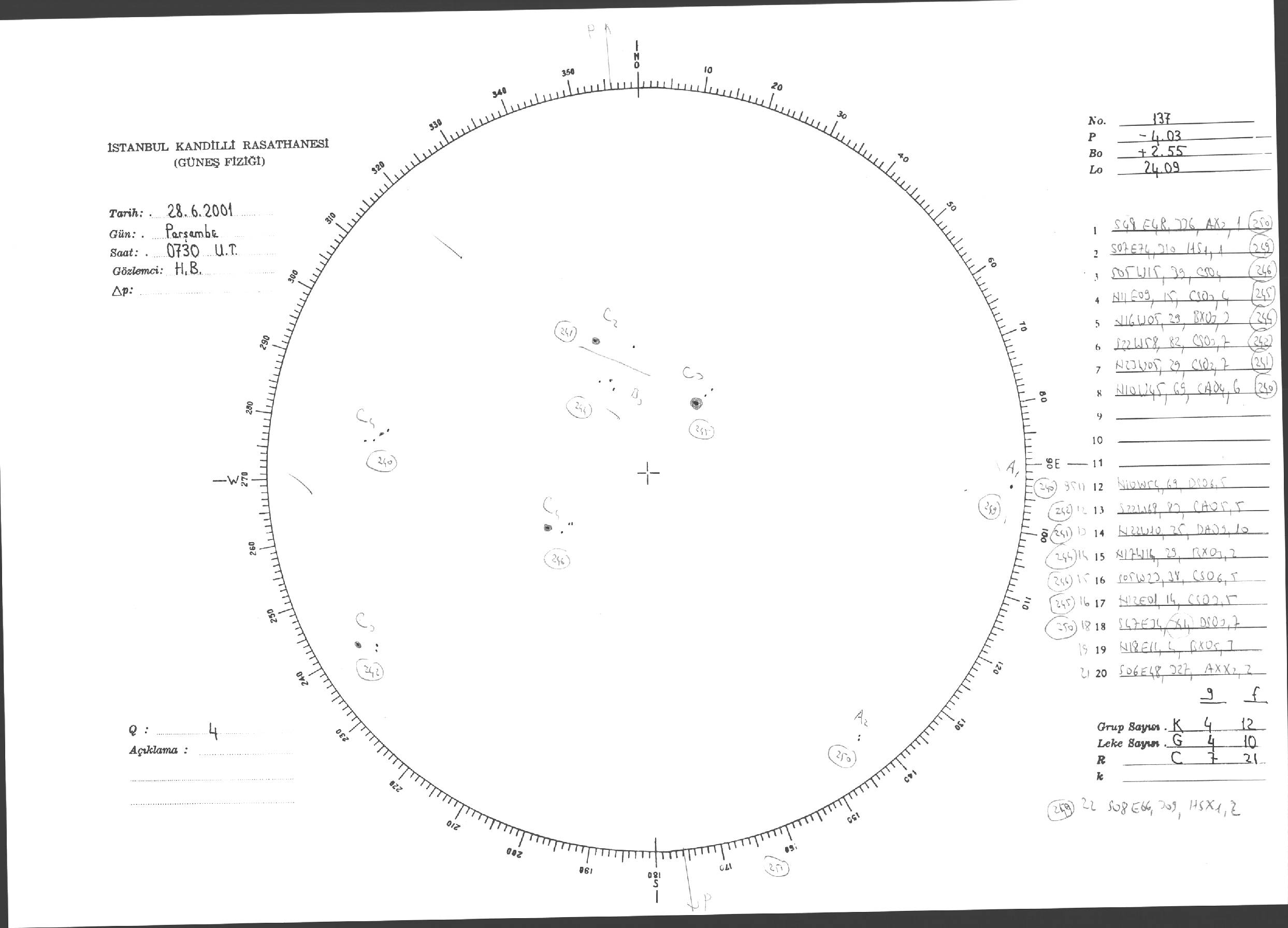 Güneş Lekesi Çizimi - 28.06.2001