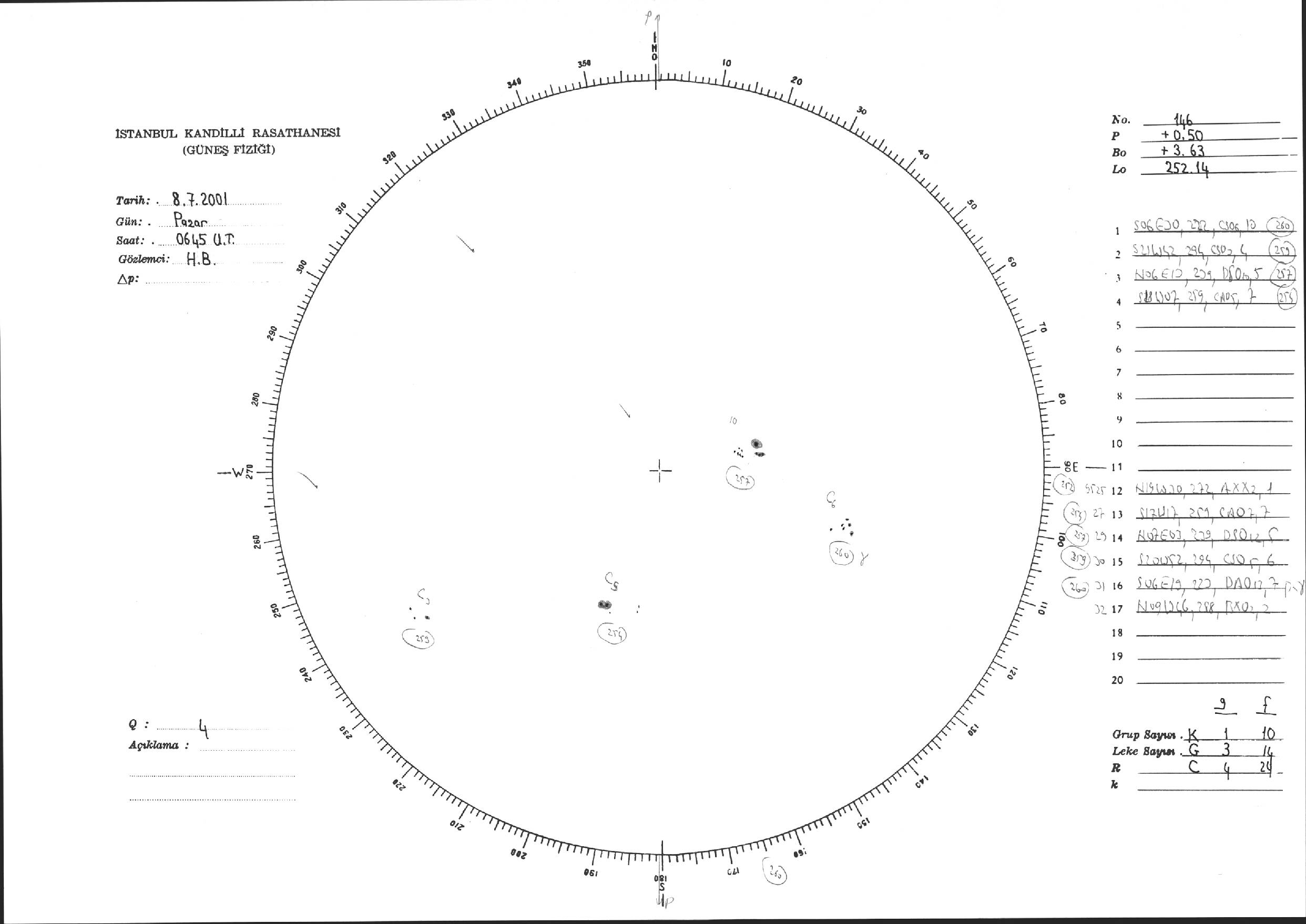 Güneş Lekesi Çizimi - 08.07.2001