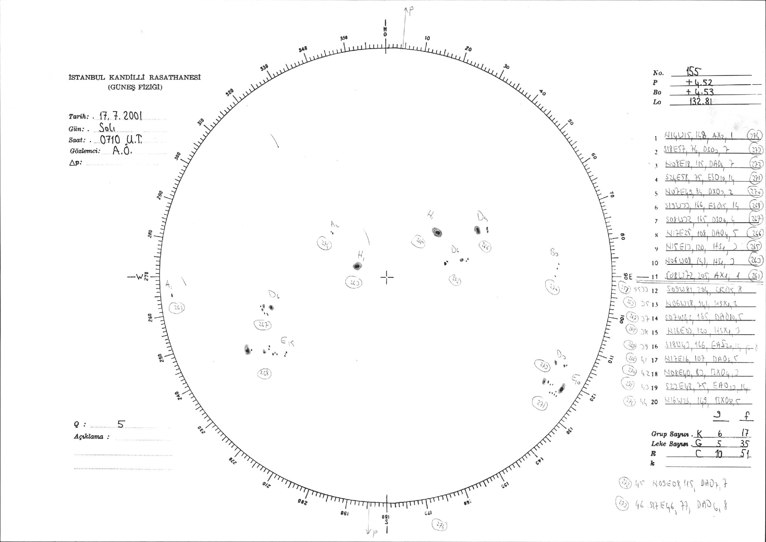 Güneş Lekesi Çizimi - 17.07.2001