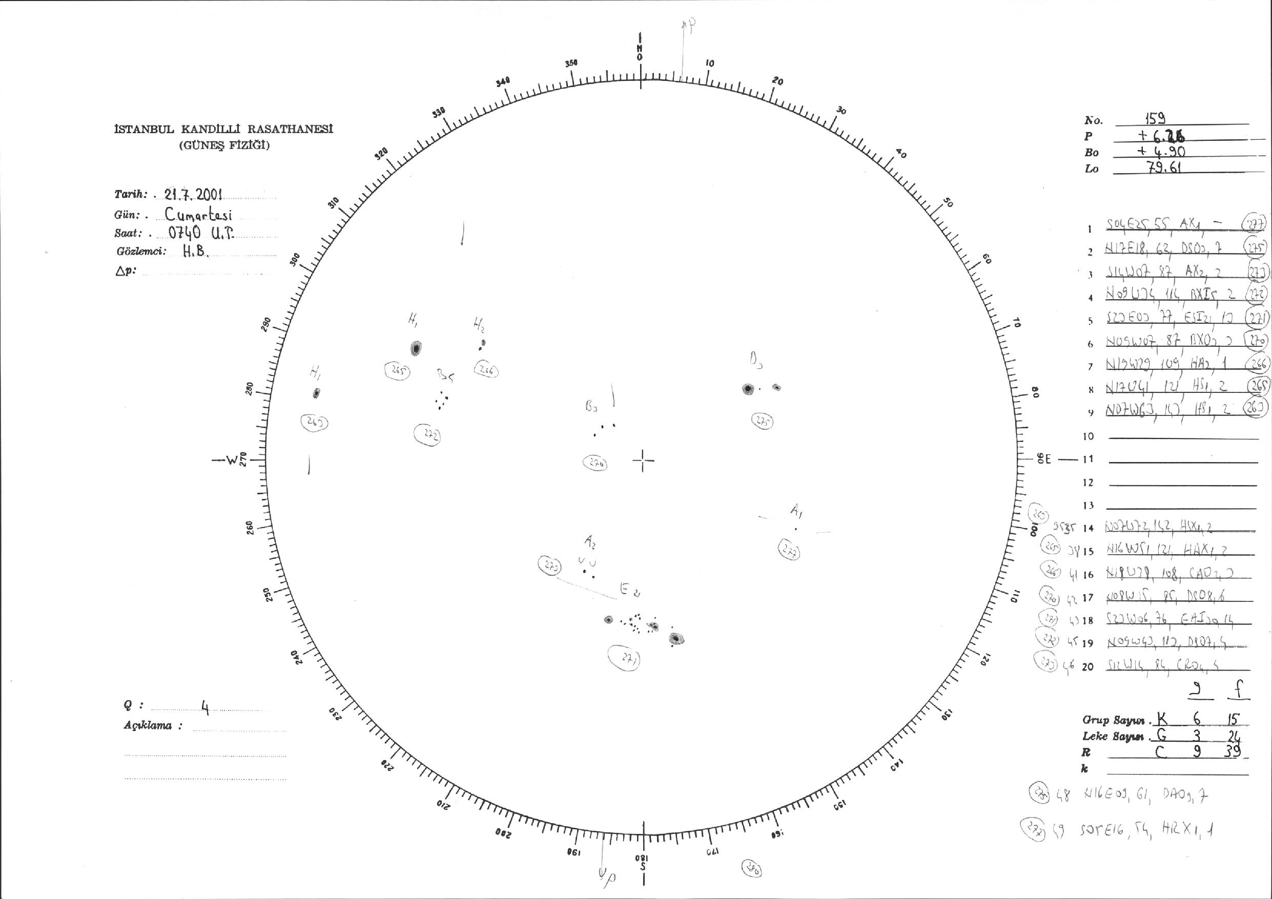 Güneş Lekesi Çizimi - 21.07.2001