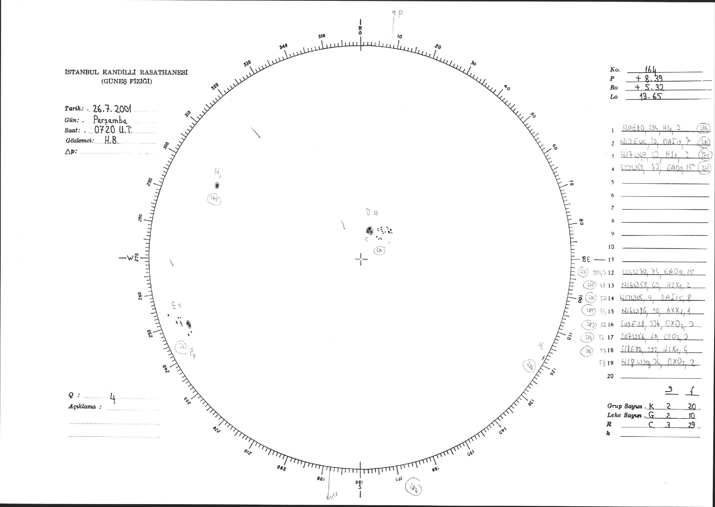 Güneş Lekesi Çizimi - 26.07.2001