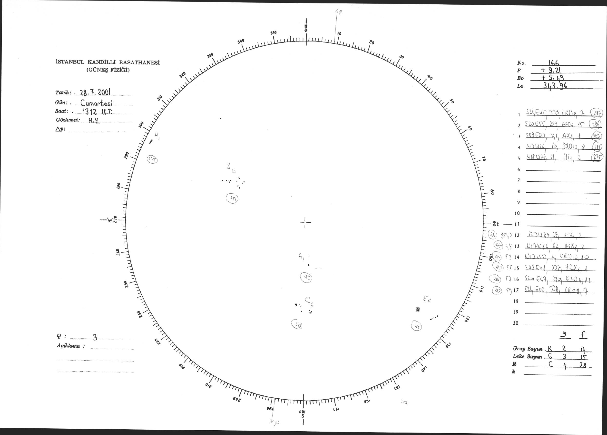 Güneş Lekesi Çizimi - 28.07.2001