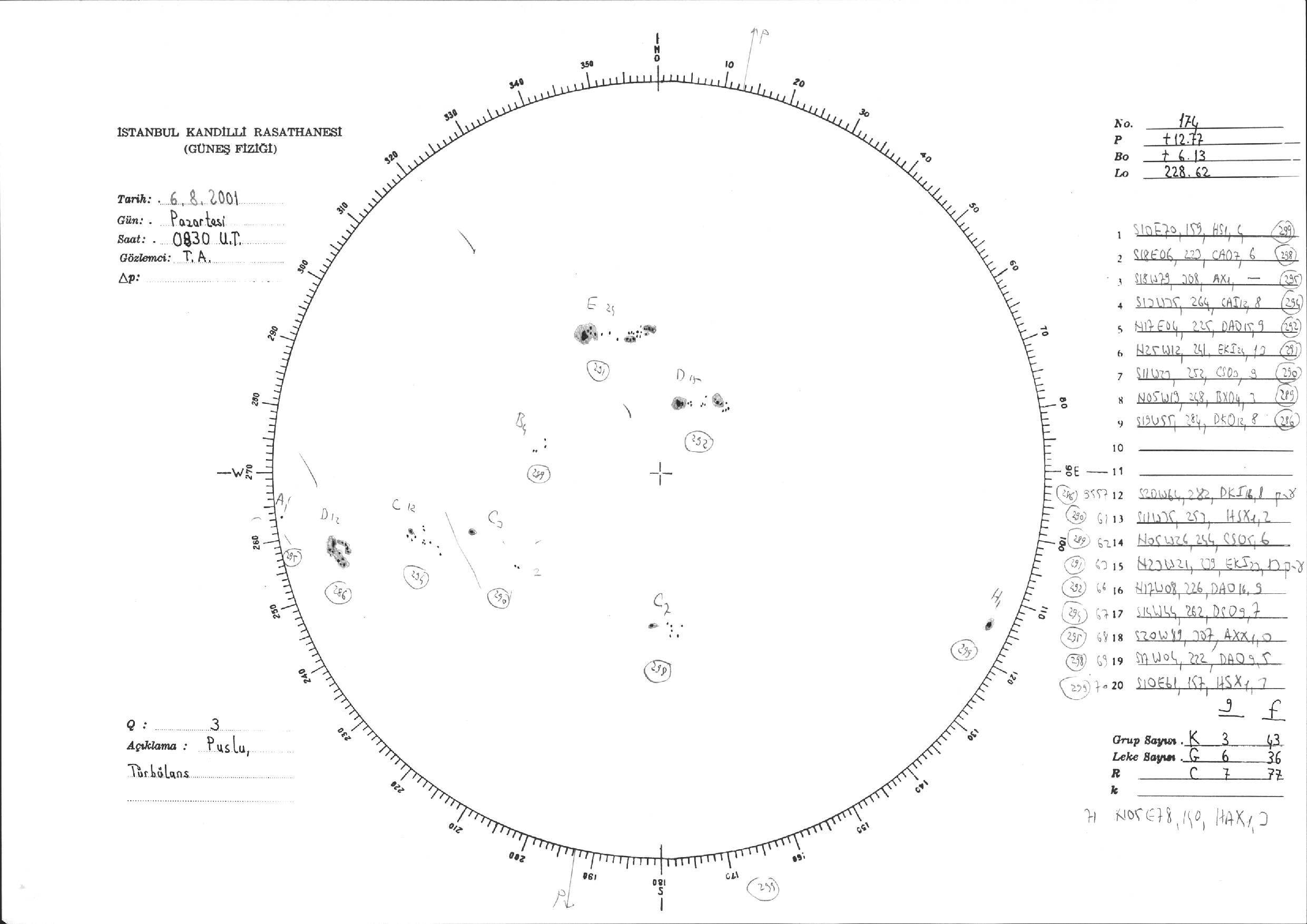 Güneş Lekesi Çizimi - 06.08.2001