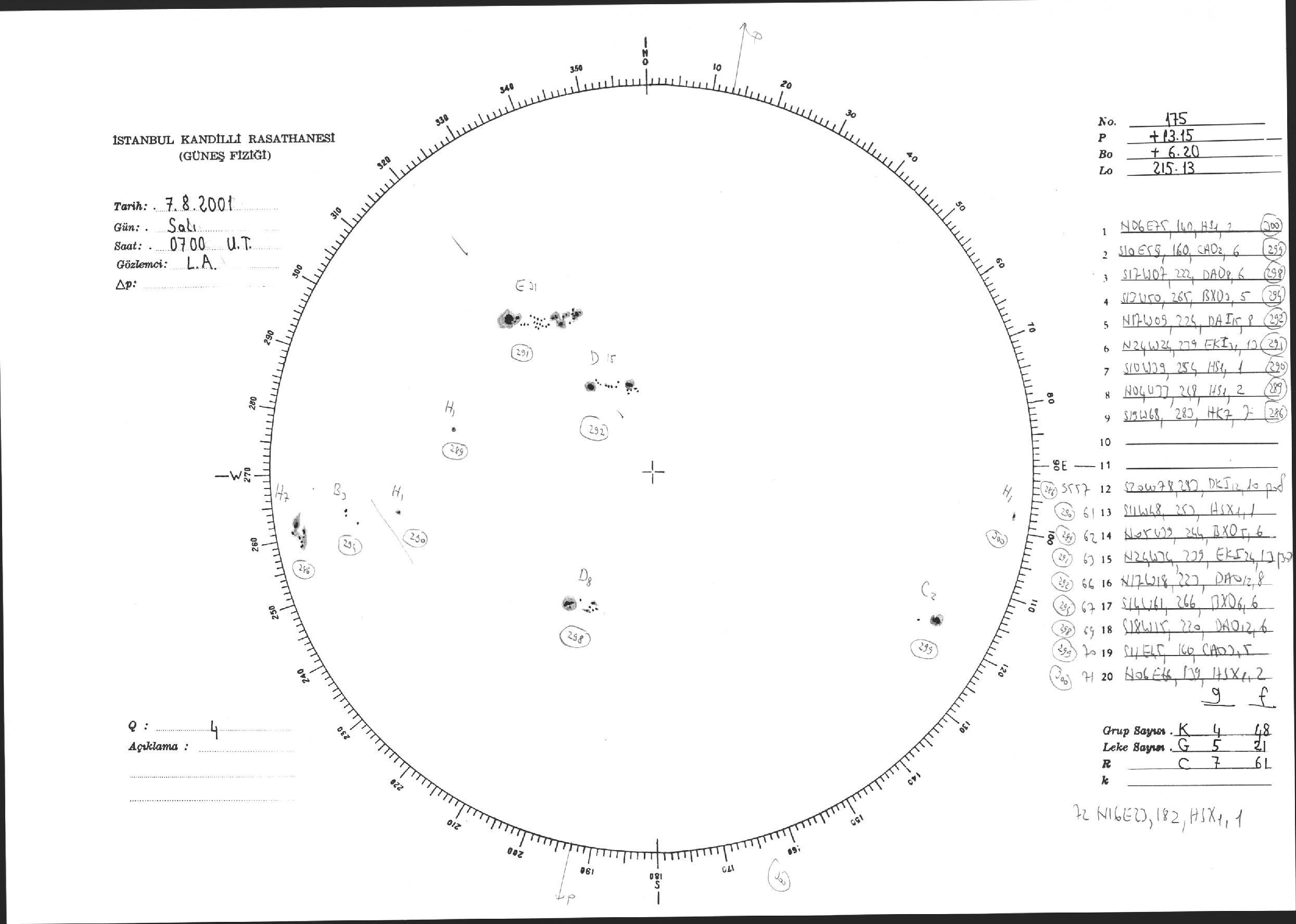 Güneş Lekesi Çizimi - 07.08.2001
