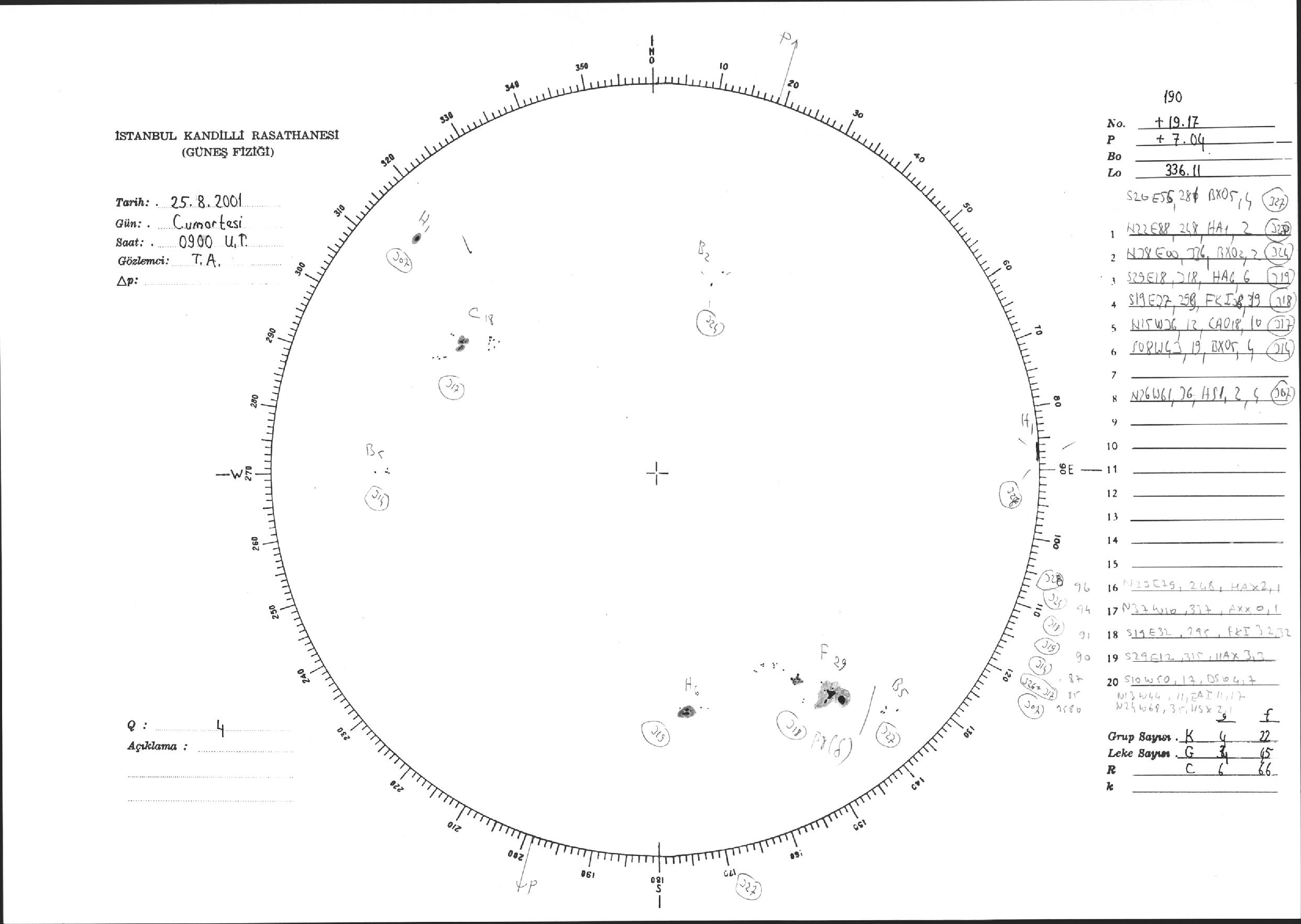 Güneş Lekesi Çizimi - 25.08.2001