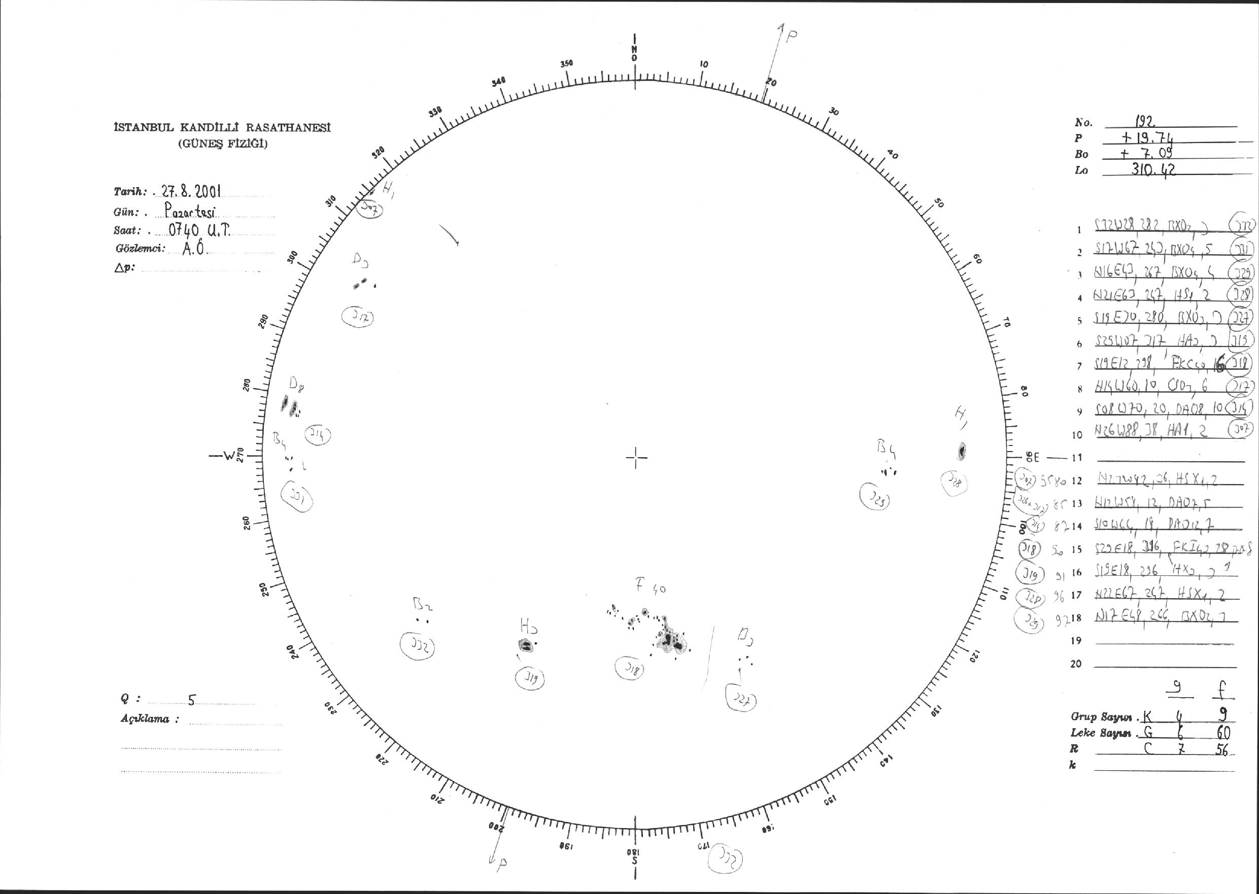Güneş Lekesi Çizimi - 27.08.2001