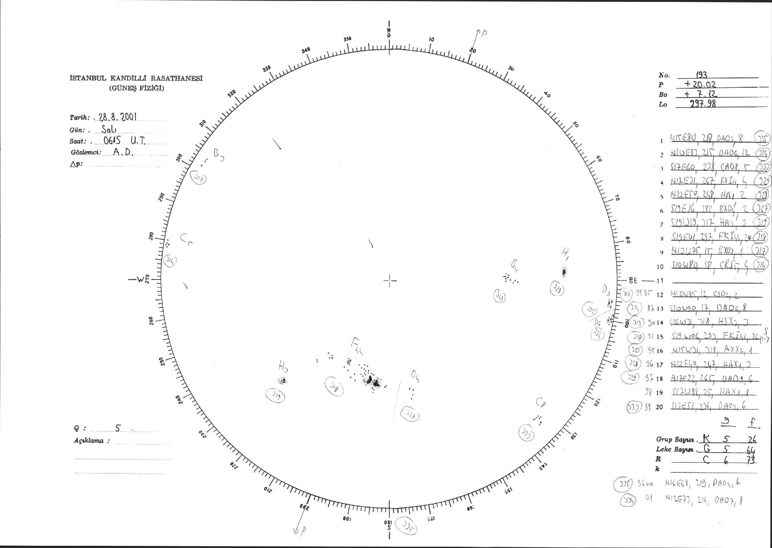 Güneş Lekesi Çizimi - 28.08.2001