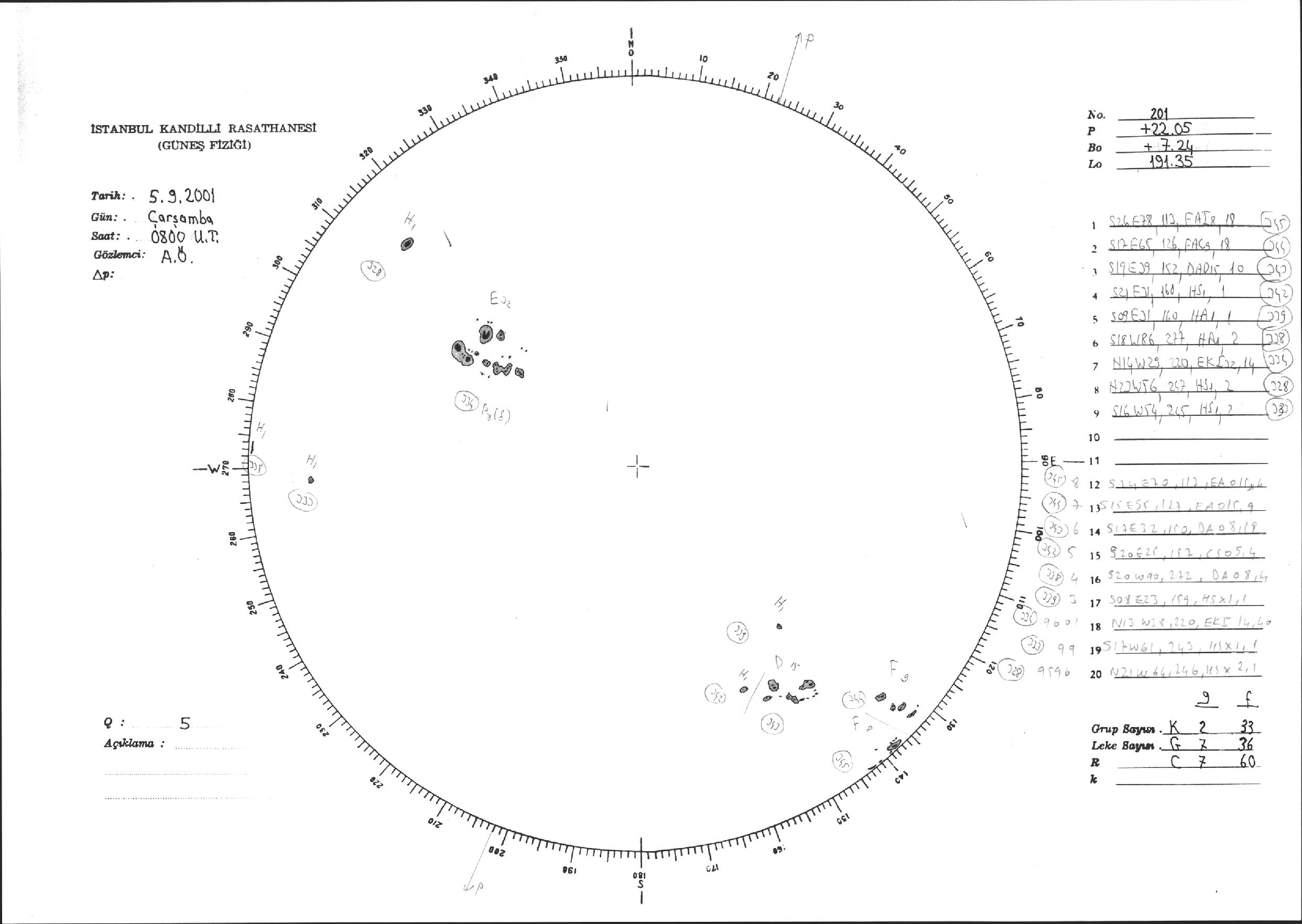Güneş Lekesi Çizimi - 05.09.2001