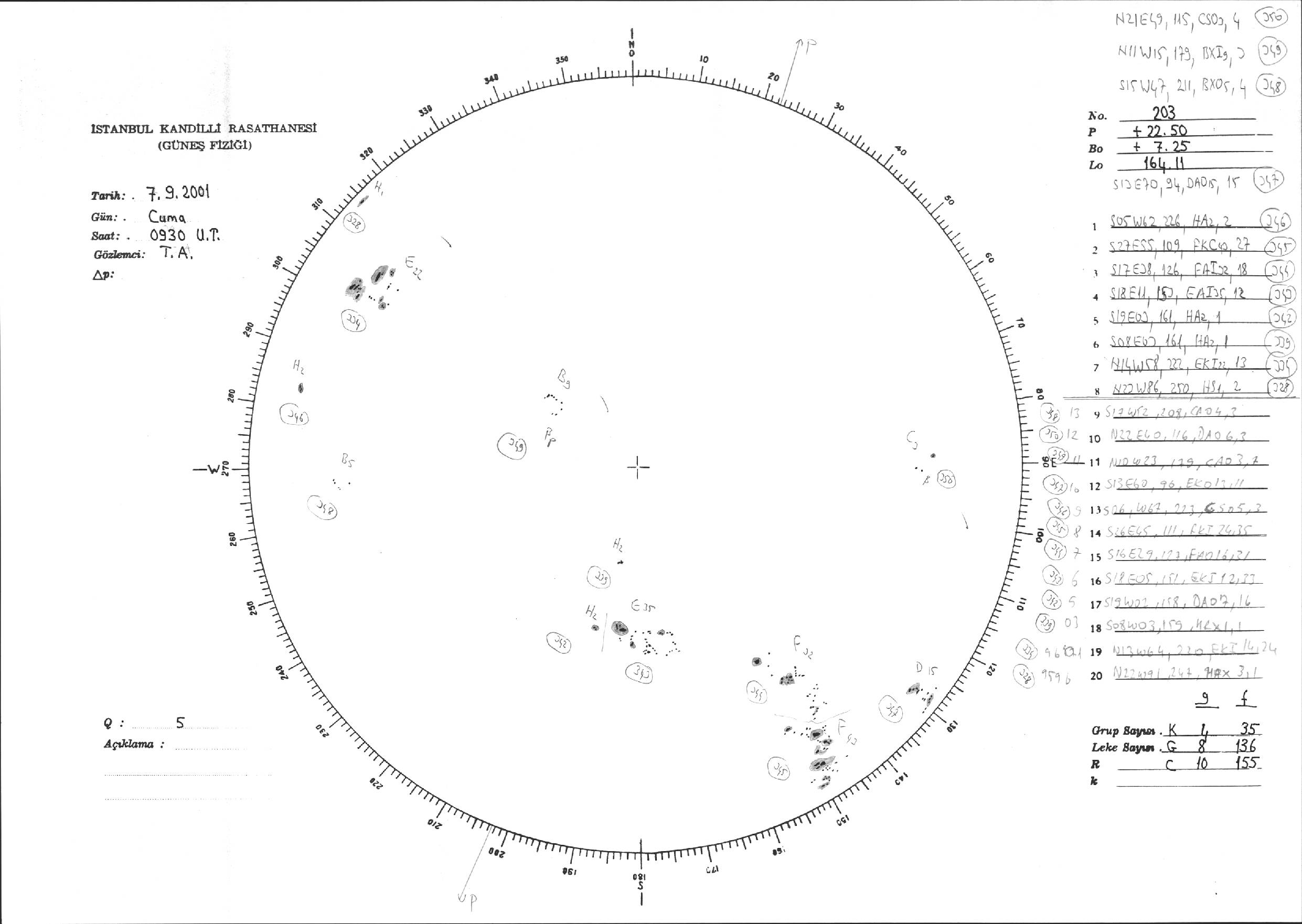 Güneş Lekesi Çizimi - 07.09.2001