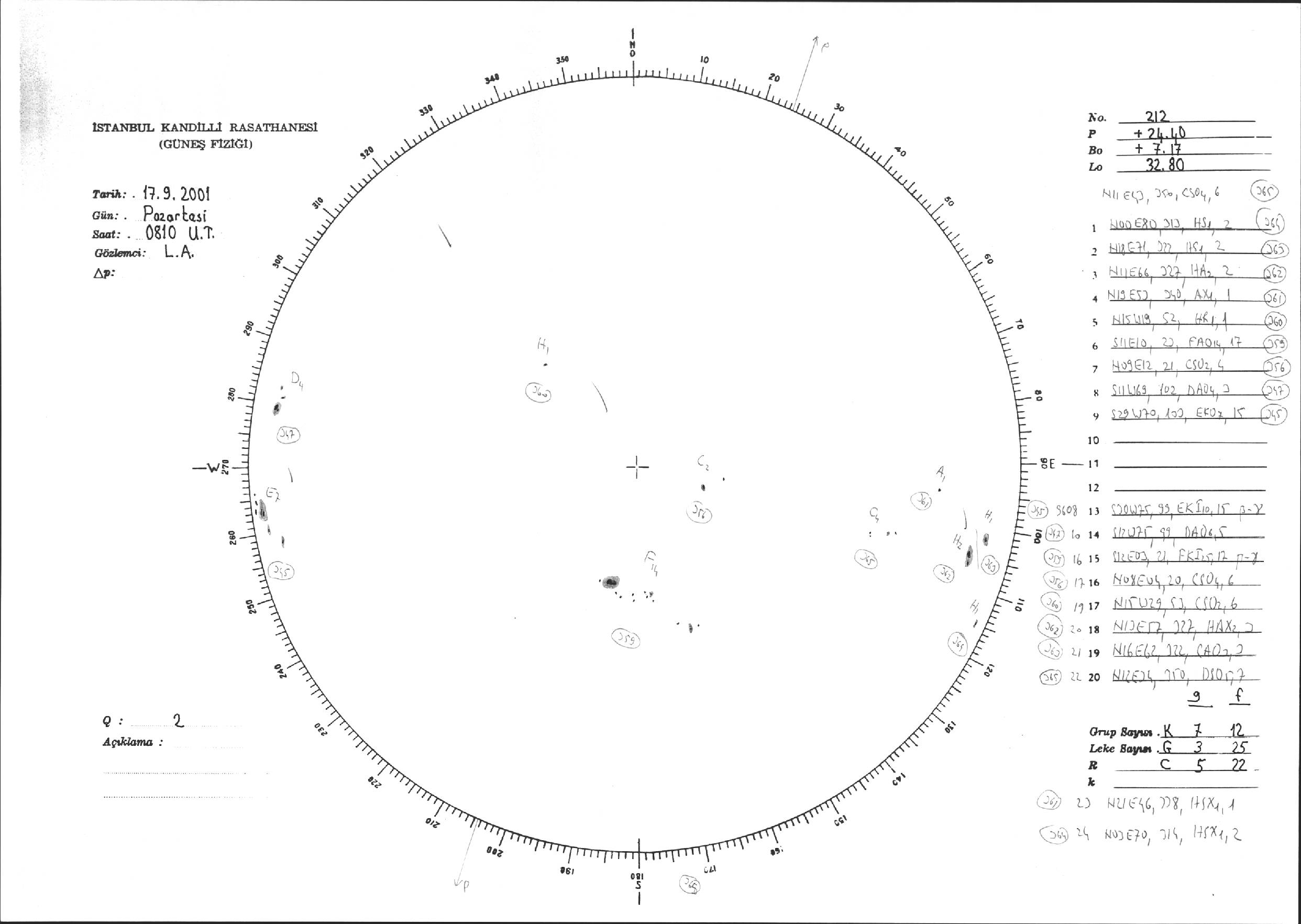 Güneş Lekesi Çizimi - 17.09.2001