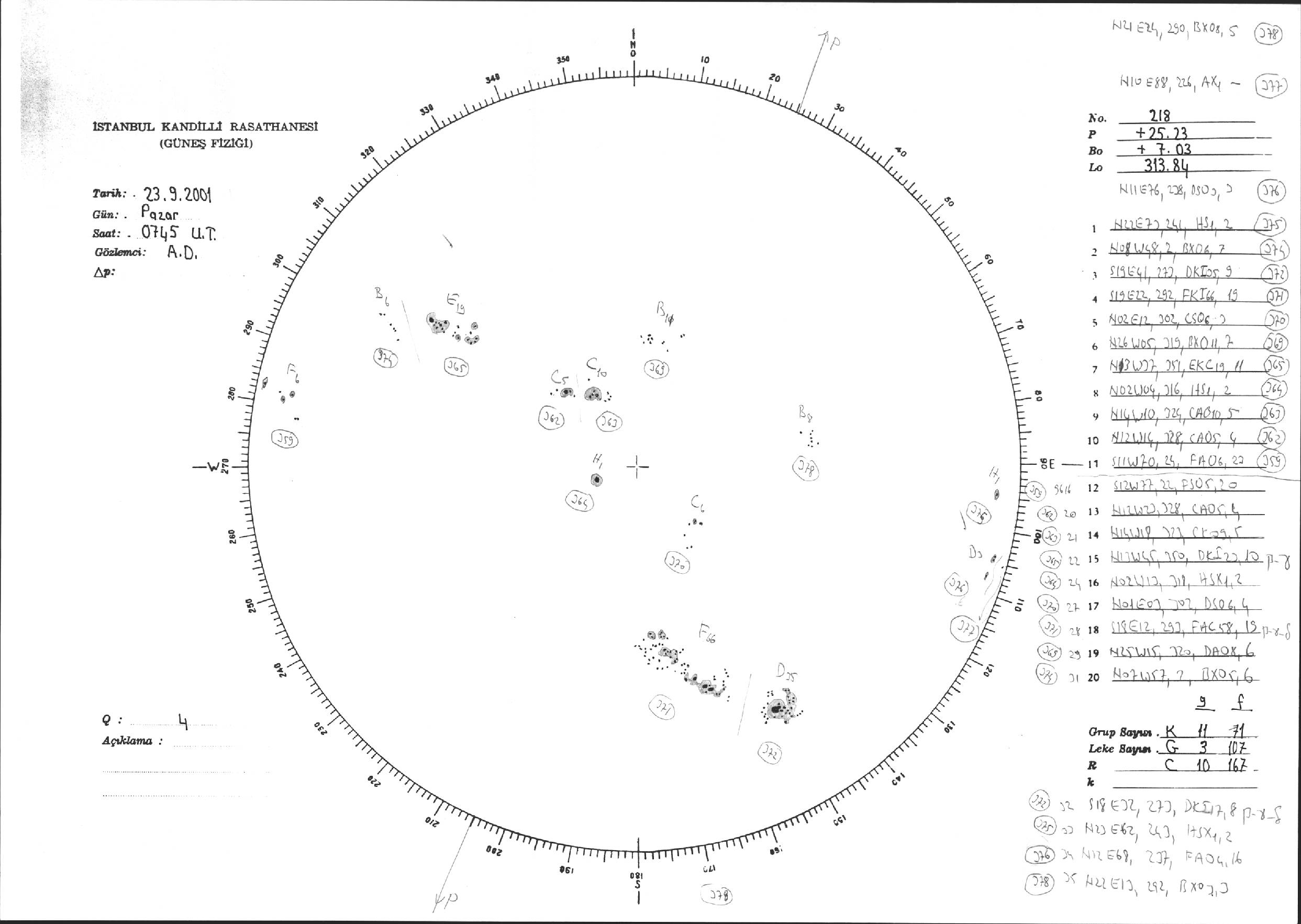 Güneş Lekesi Çizimi - 23.09.2001