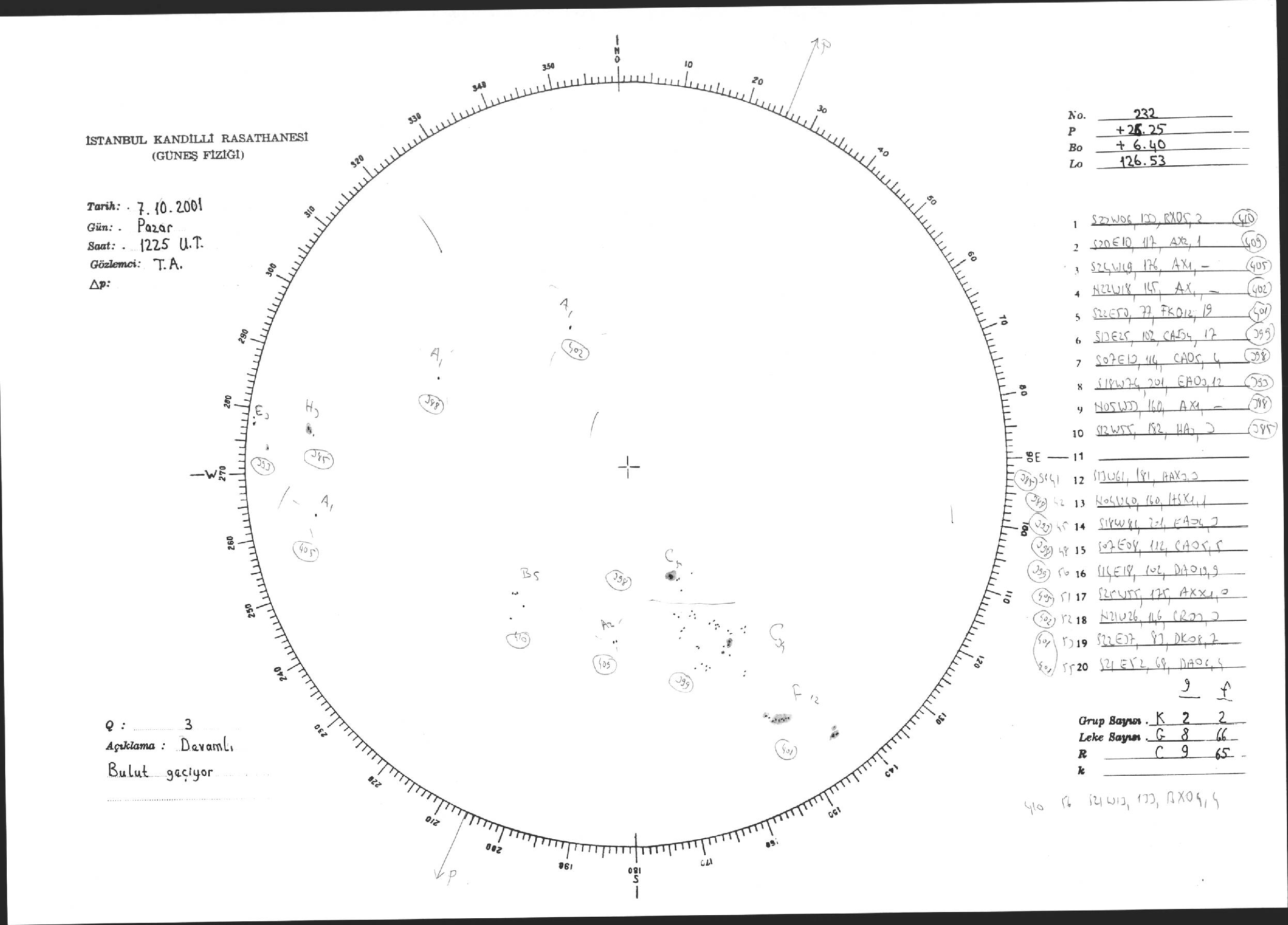 Güneş Lekesi Çizimi - 07.10.2001