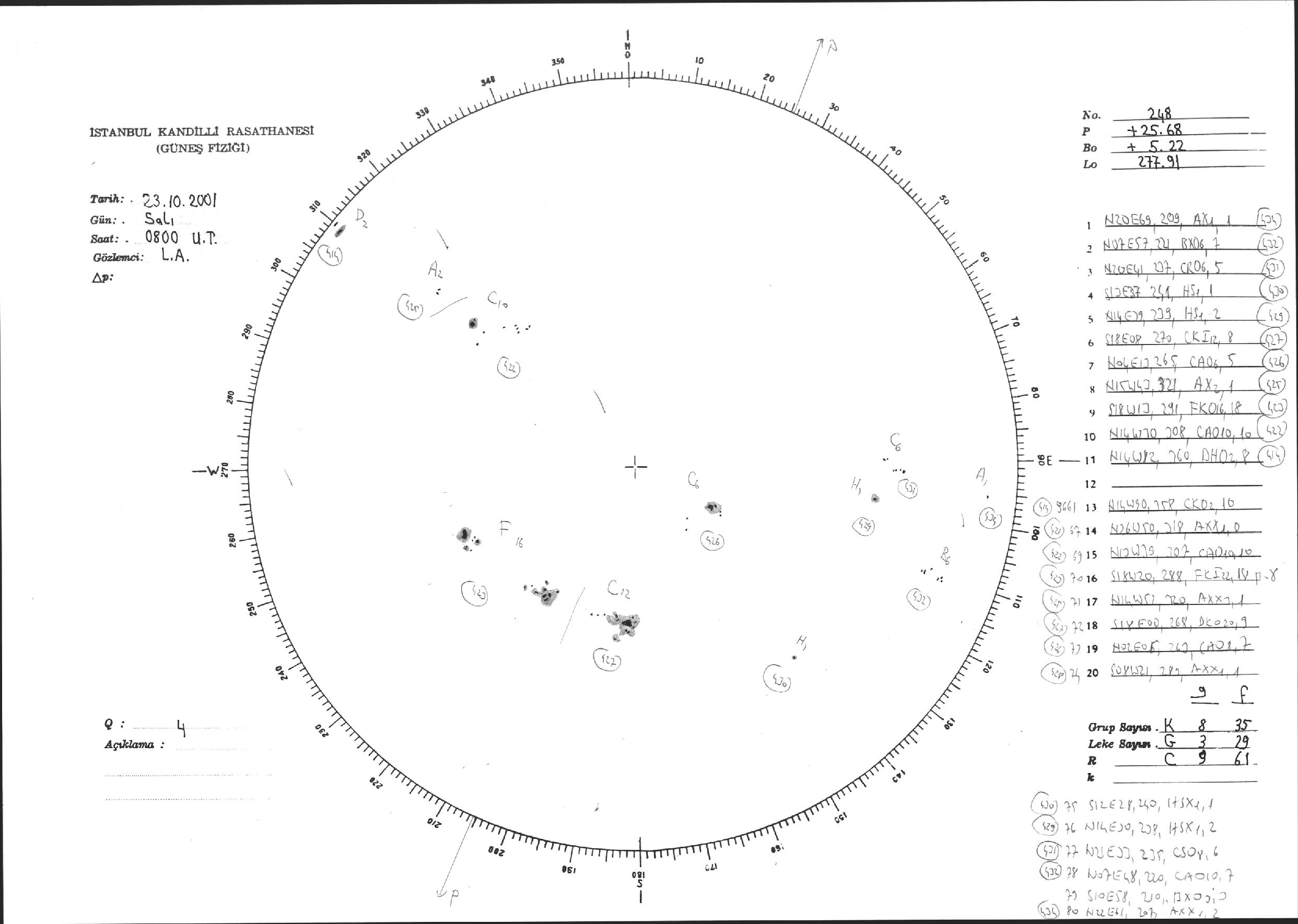Güneş Lekesi Çizimi - 23.10.2001