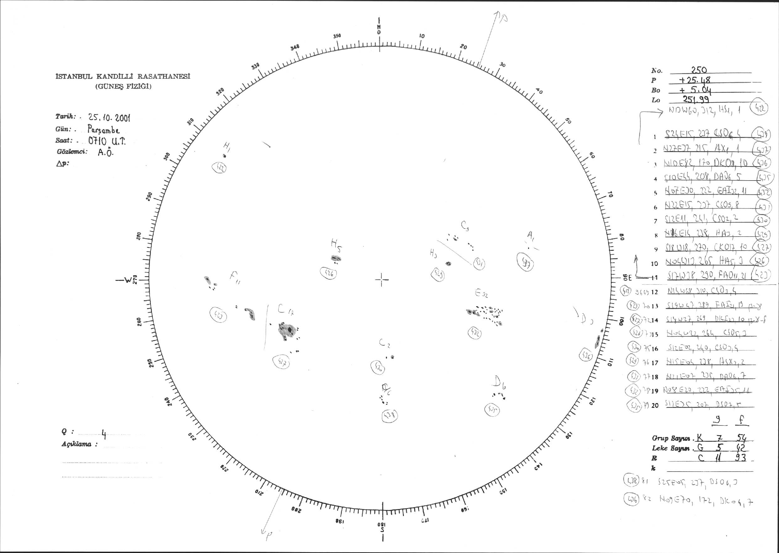 Güneş Lekesi Çizimi - 25.10.2001