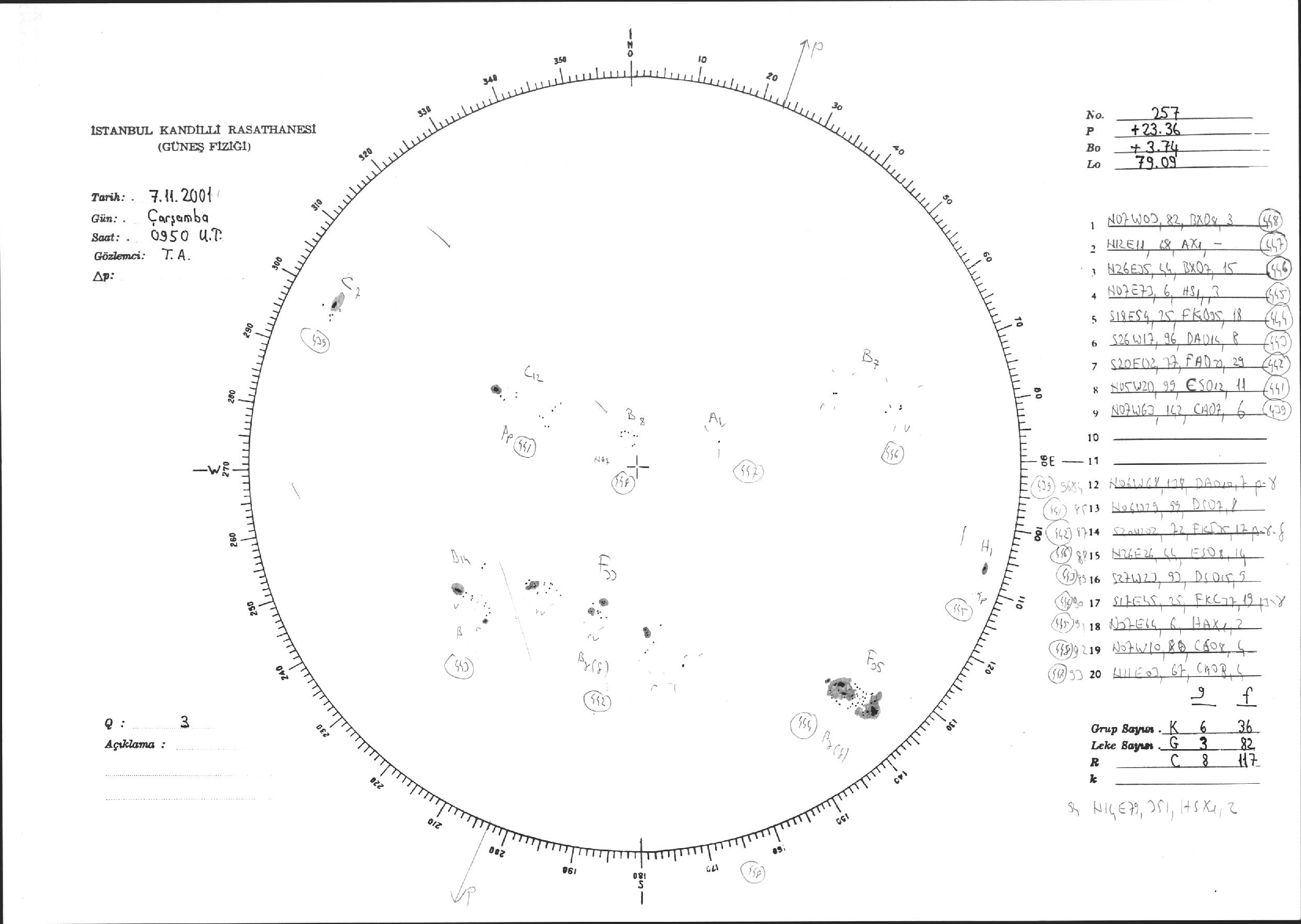 Güneş Lekesi Çizimi - 07.11.2001