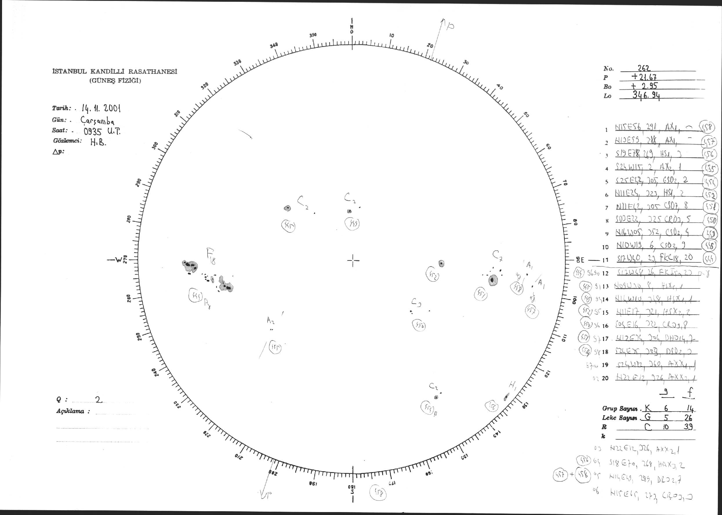 Güneş Lekesi Çizimi - 14.11.2001