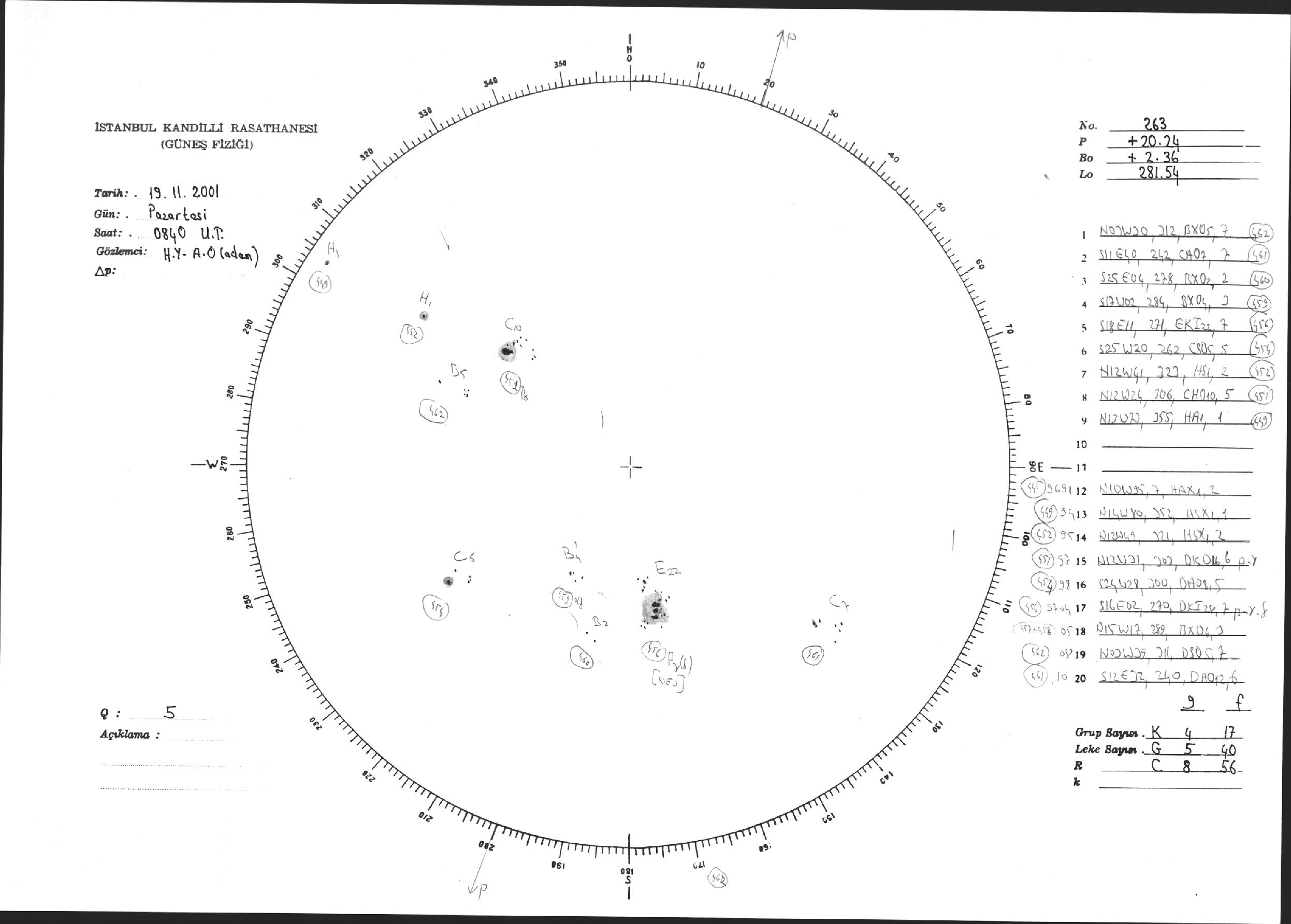 Güneş Lekesi Çizimi - 19.11.2001