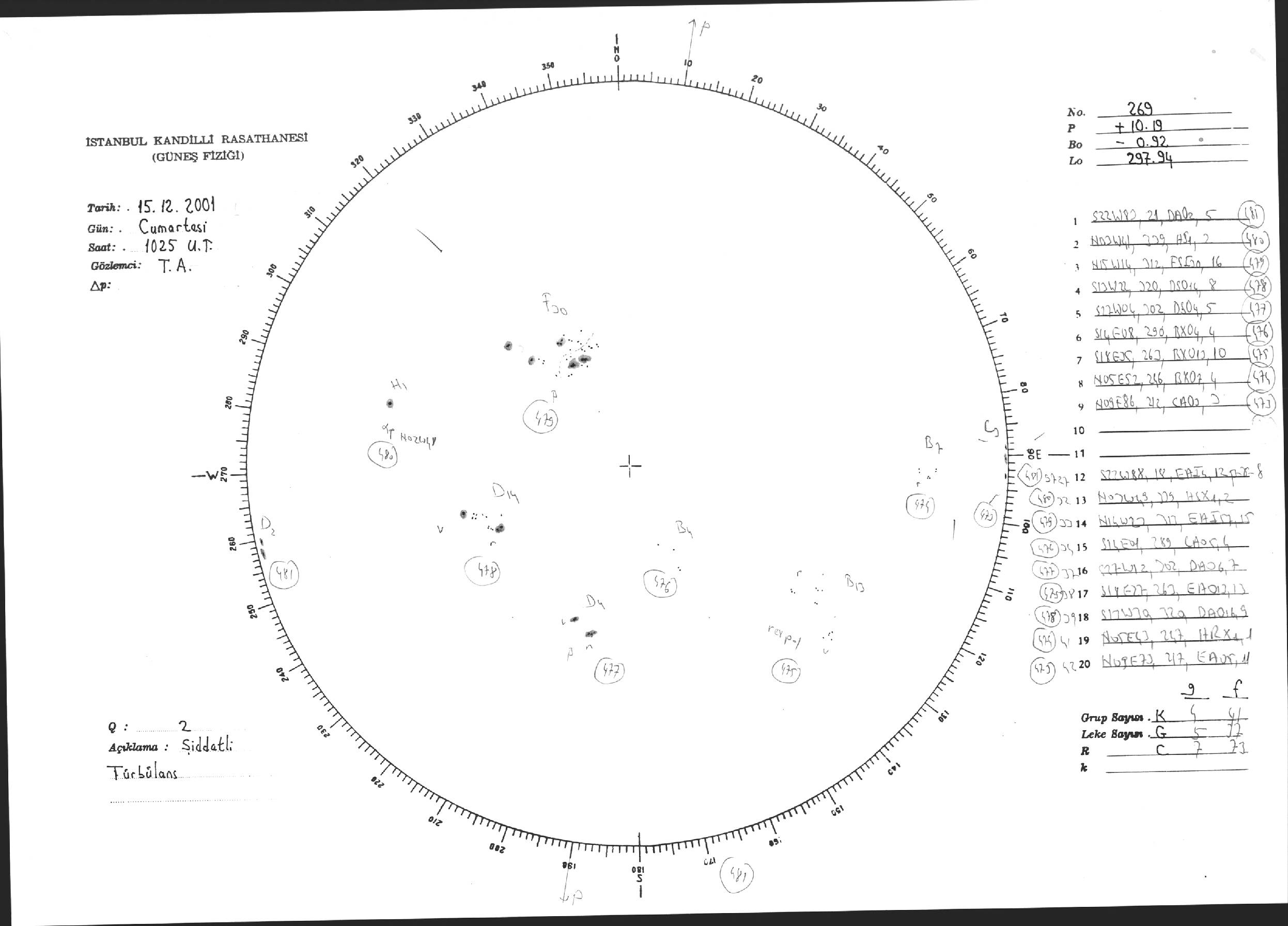 Güneş Lekesi Çizimi - 15.12.2001