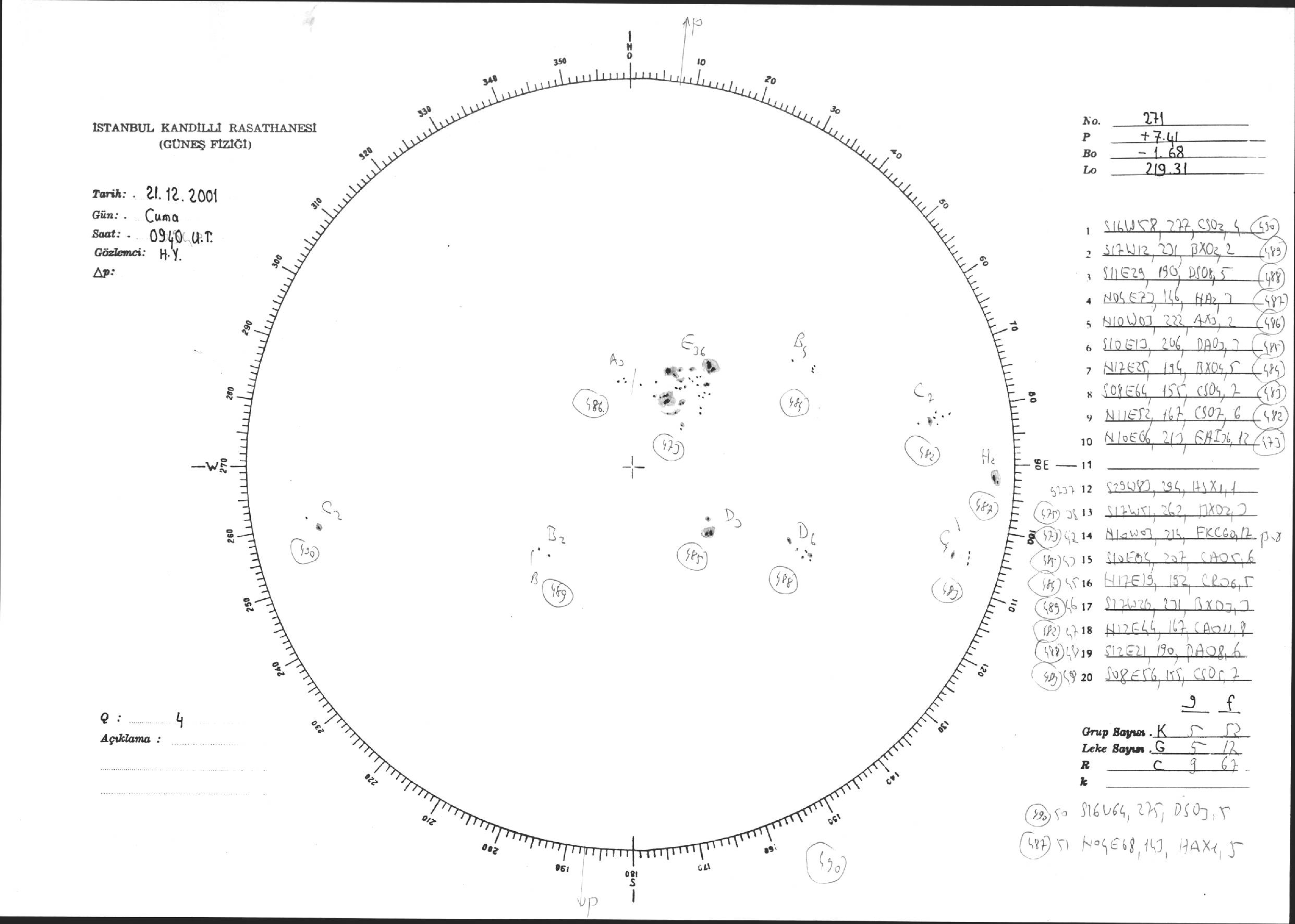 Güneş Lekesi Çizimi - 21.12.2001