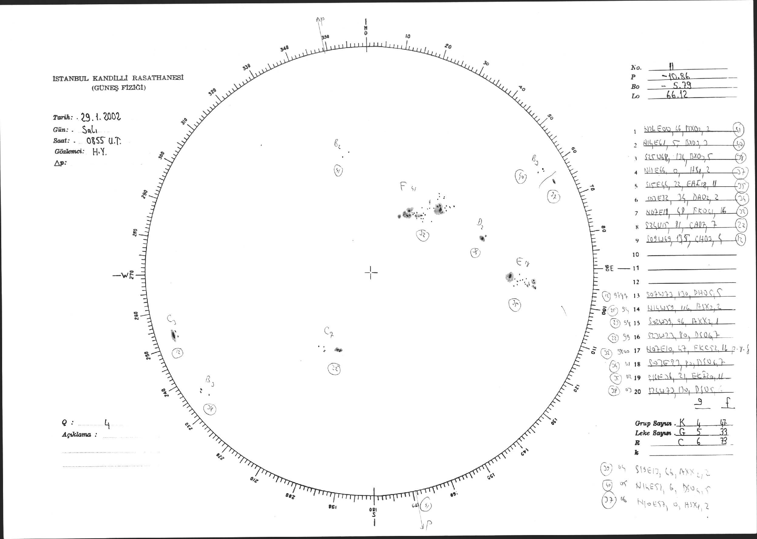 Güneş Lekesi Çizimi - 29.01.2002