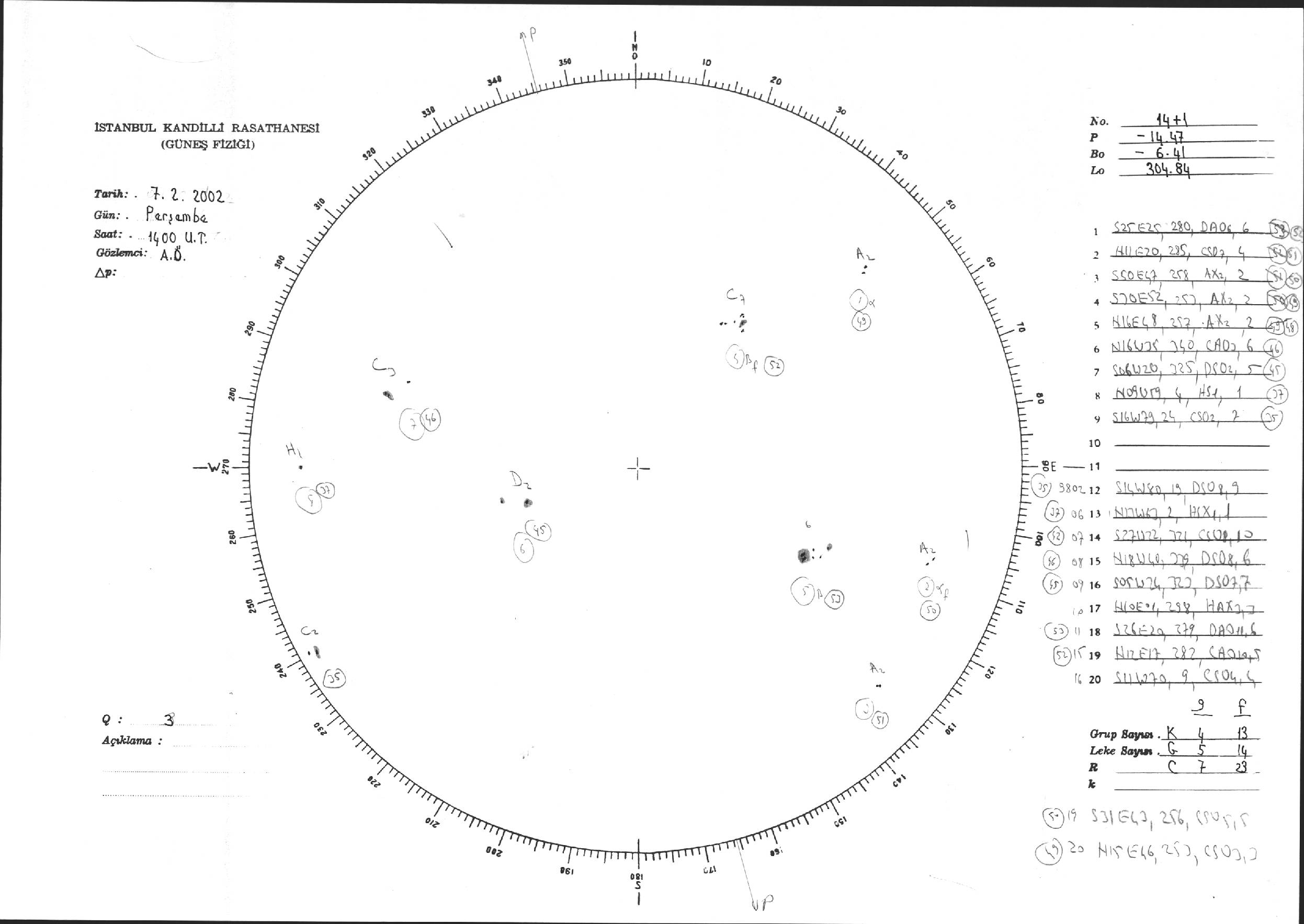 Güneş Lekesi Çizimi - 07.02.2002