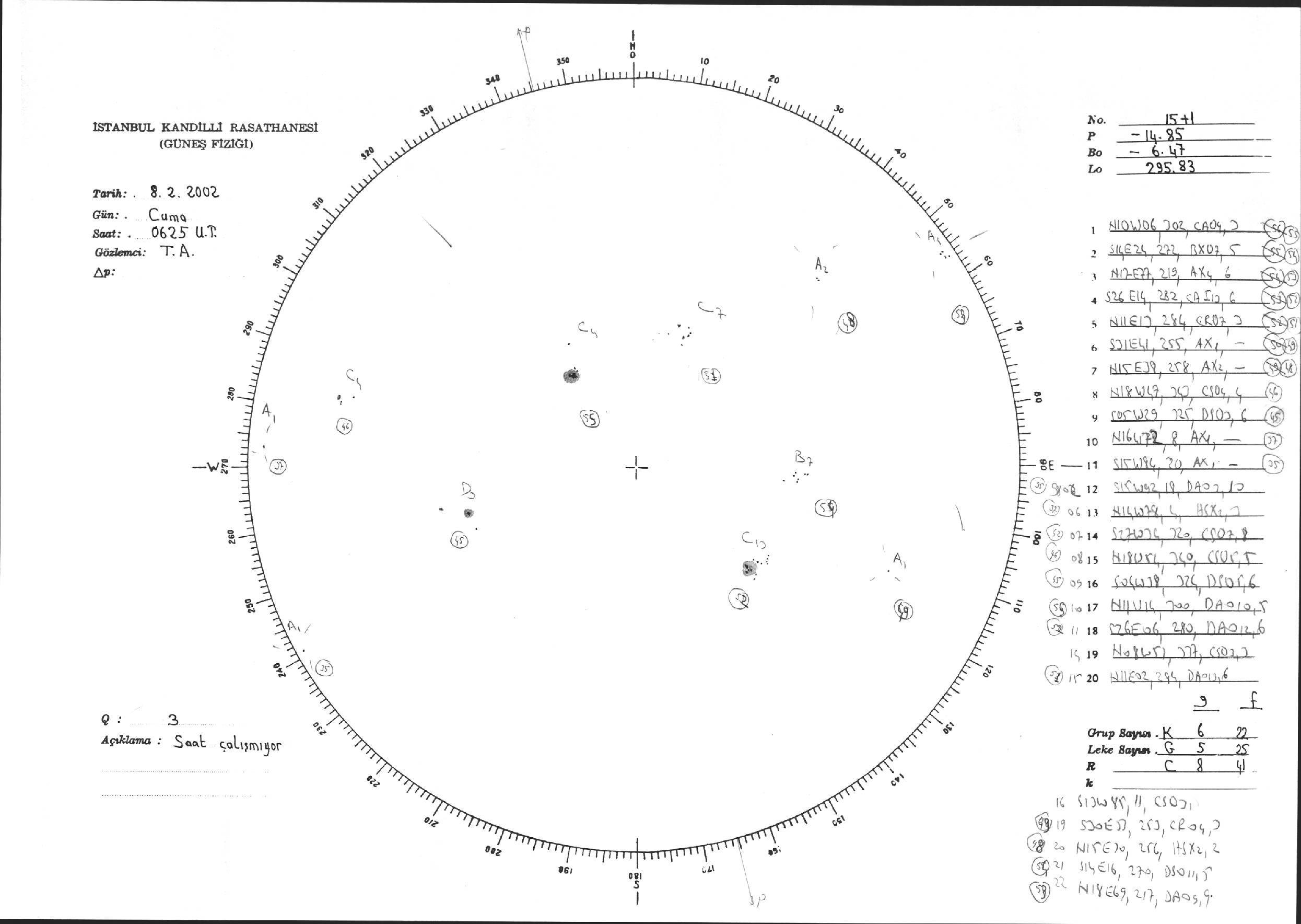 Güneş Lekesi Çizimi - 08.02.2002