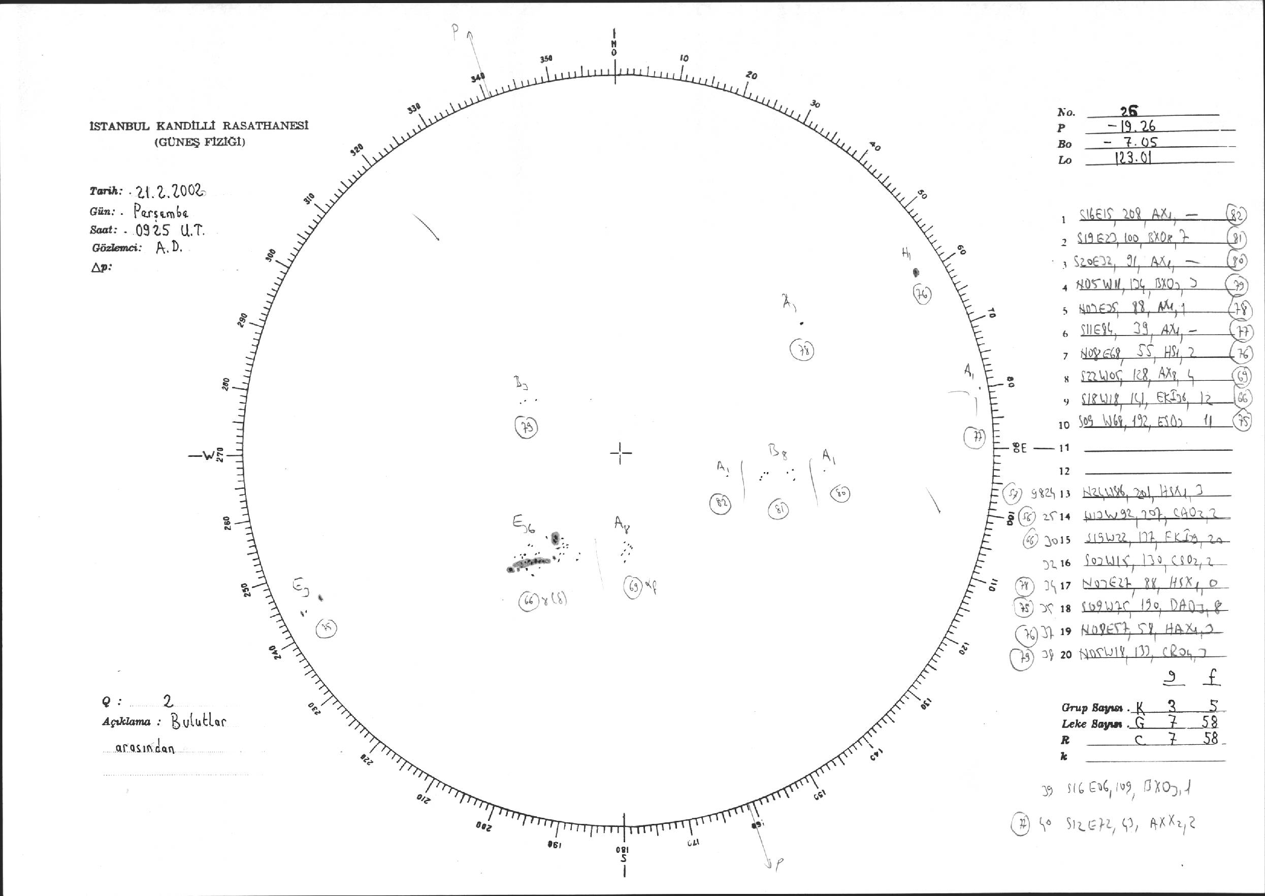 Güneş Lekesi Çizimi - 21.02.2002