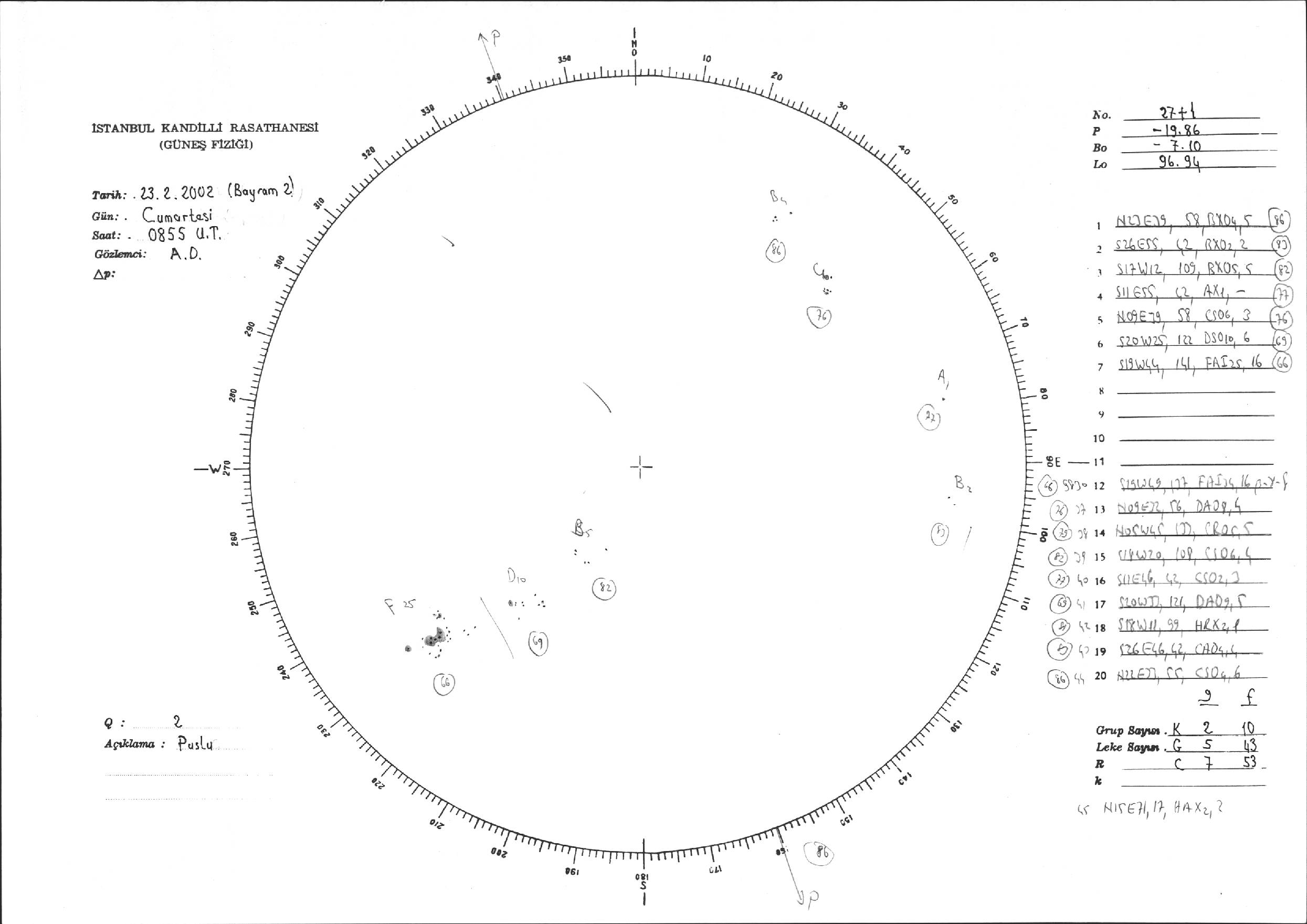Güneş Lekesi Çizimi - 23.02.2002