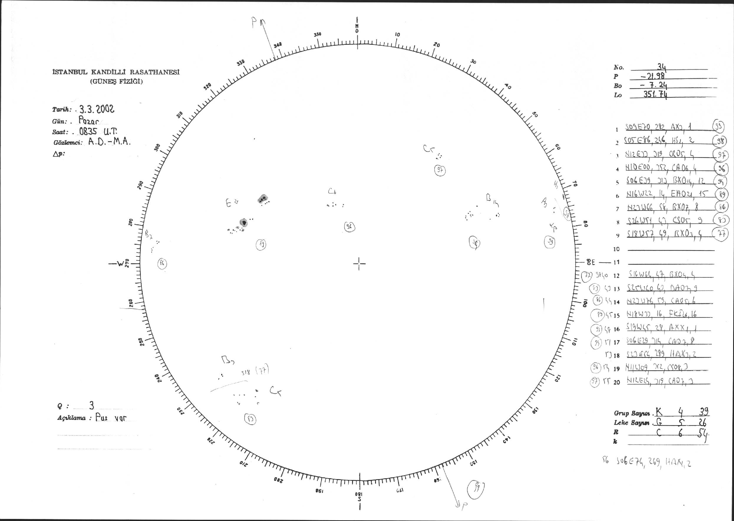 Güneş Lekesi Çizimi - 03.03.2002
