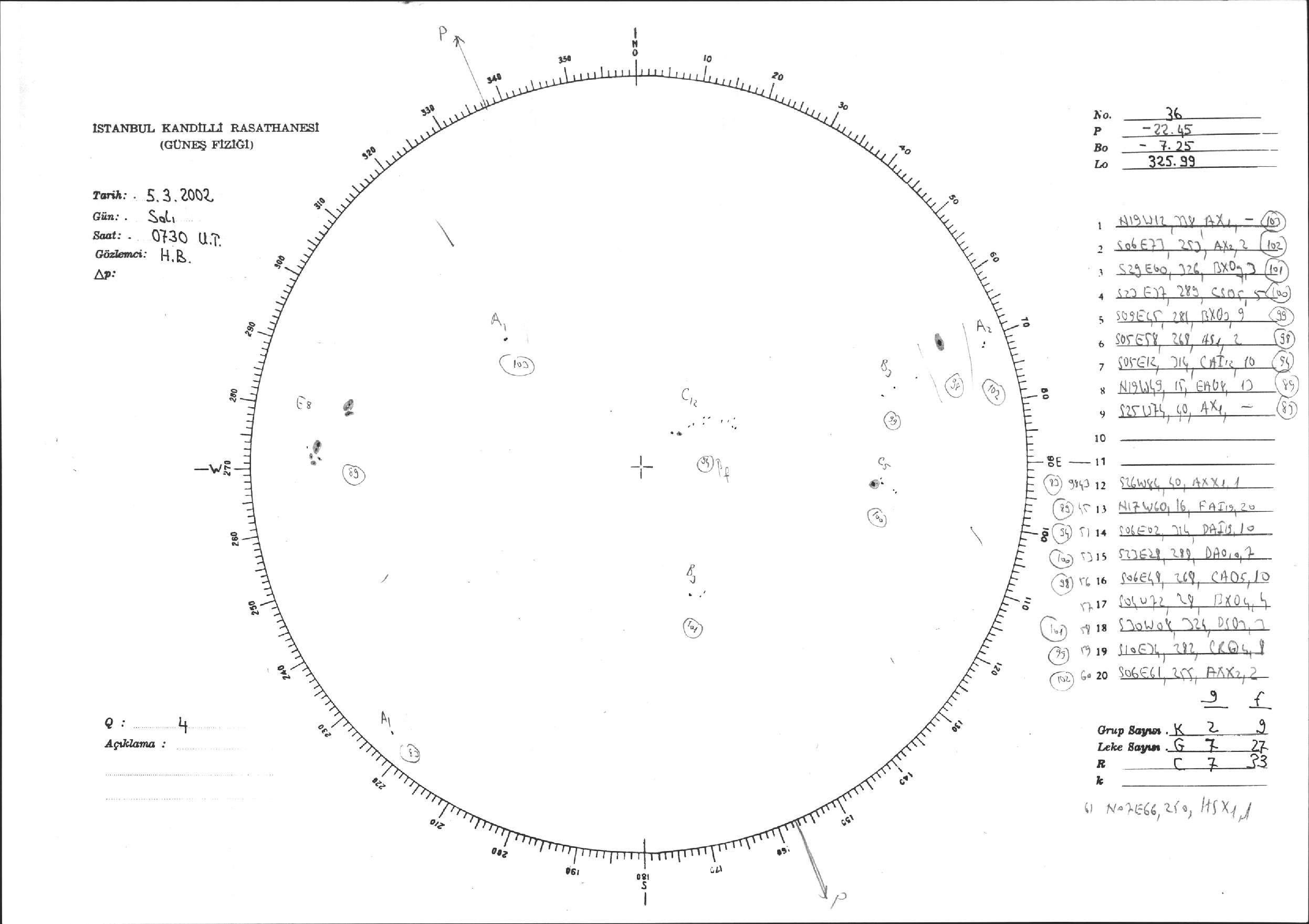 Güneş Lekesi Çizimi - 05.03.2002