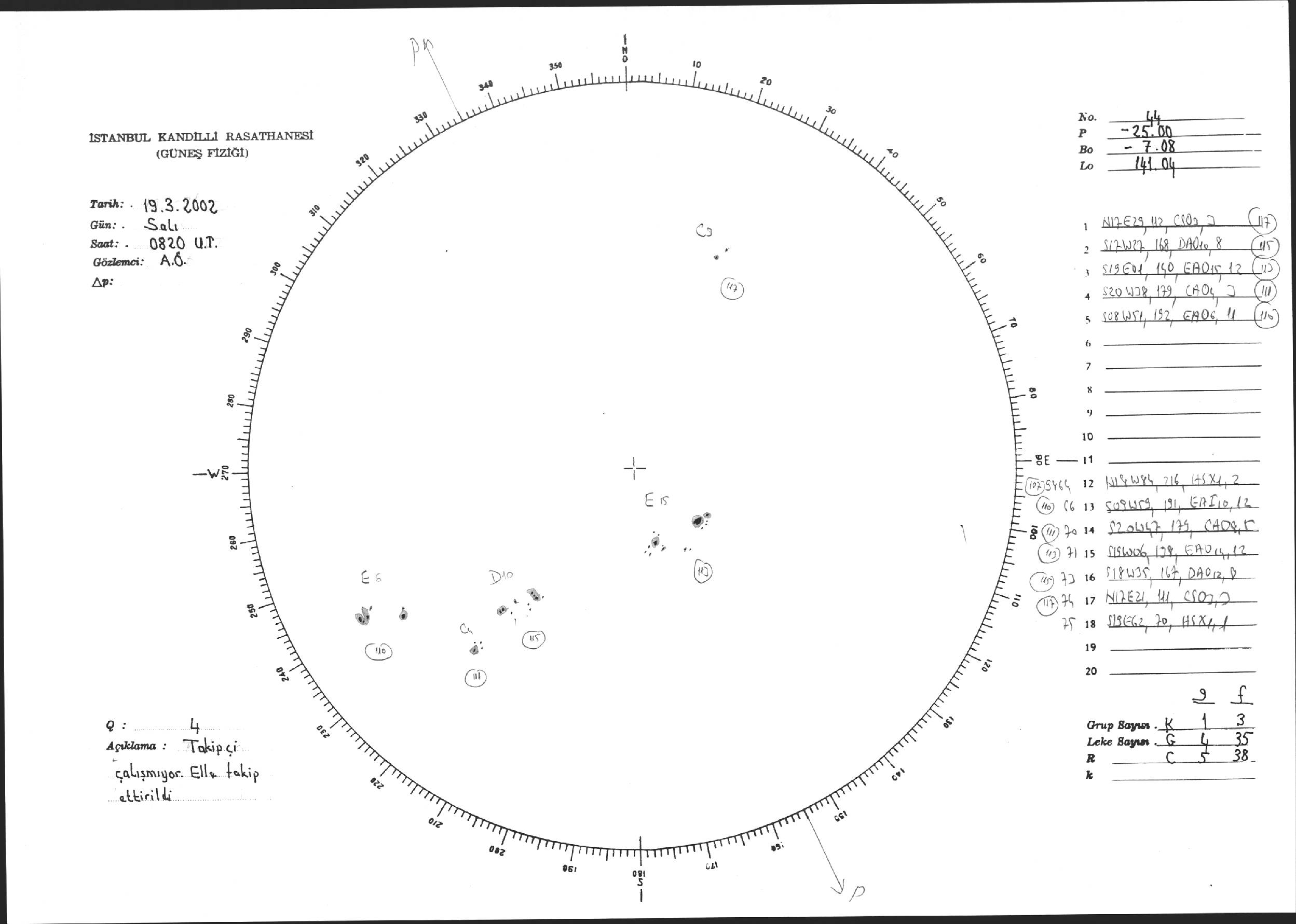 Güneş Lekesi Çizimi - 19.03.2002