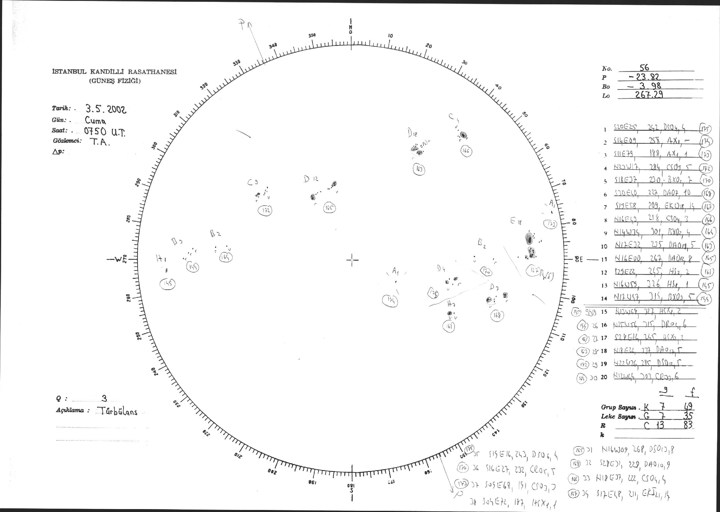 Güneş Lekesi Çizimi - 03.05.2002