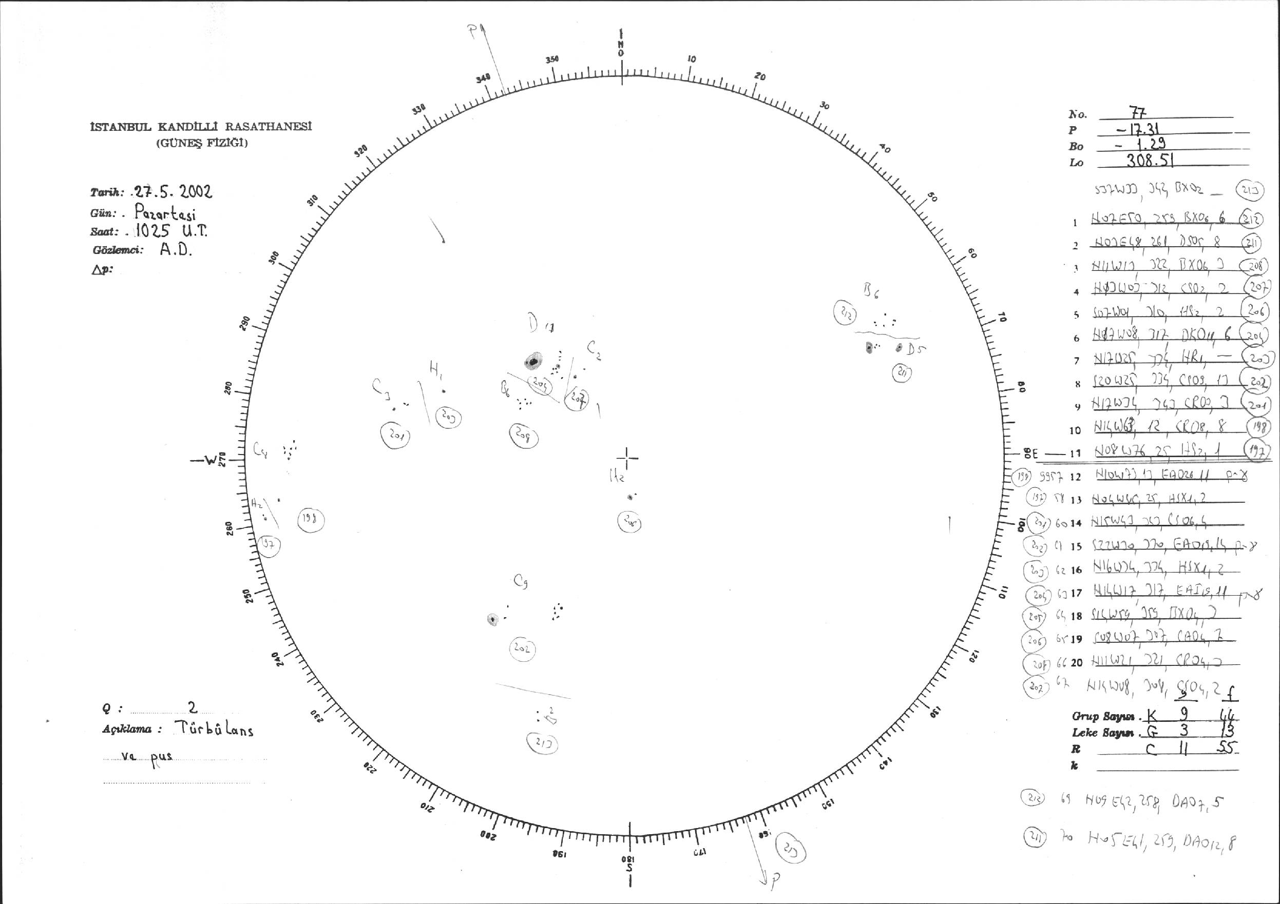 Güneş Lekesi Çizimi - 27.05.2002