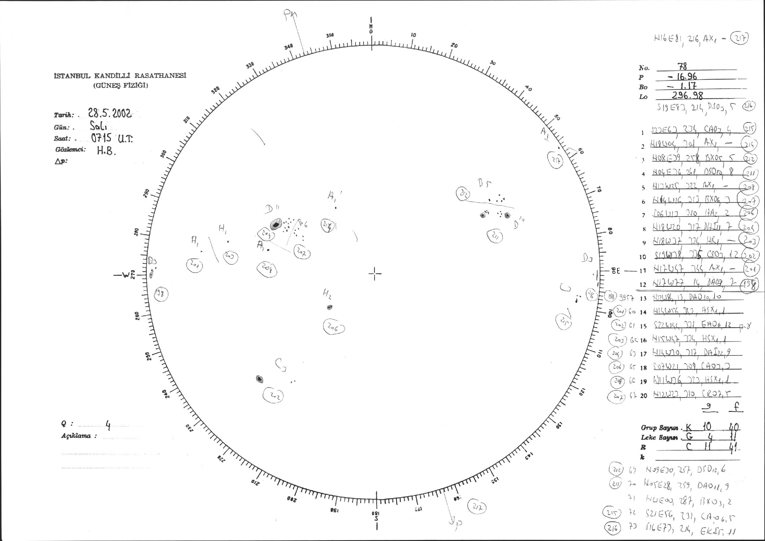 Güneş Lekesi Çizimi - 28.05.2002