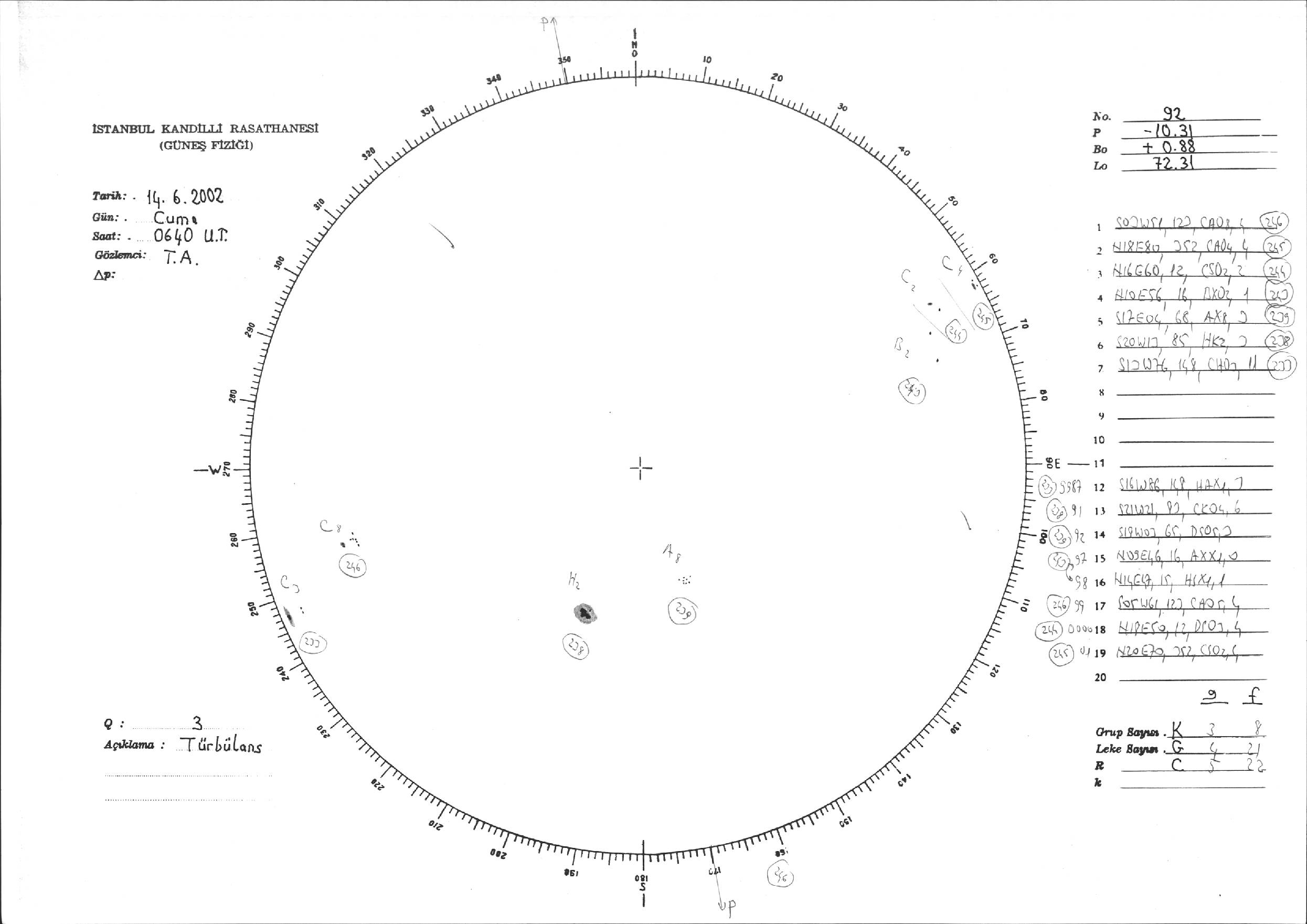 Güneş Lekesi Çizimi - 14.06.2002