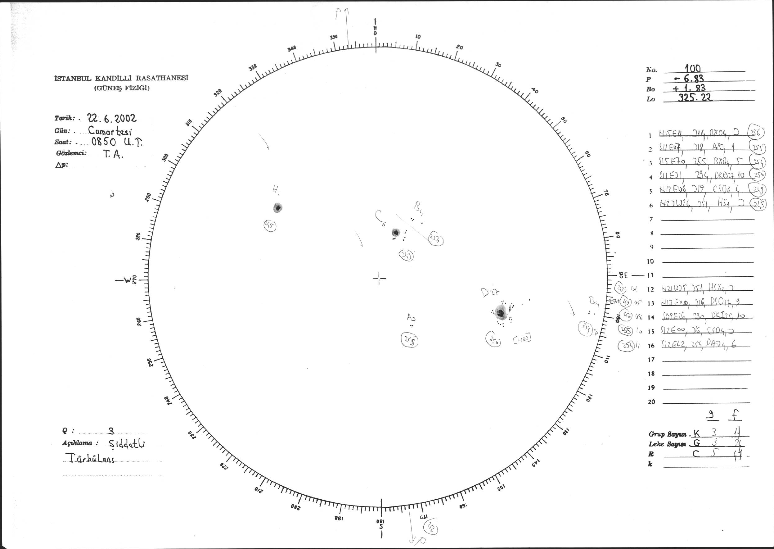 Güneş Lekesi Çizimi - 22.06.2002