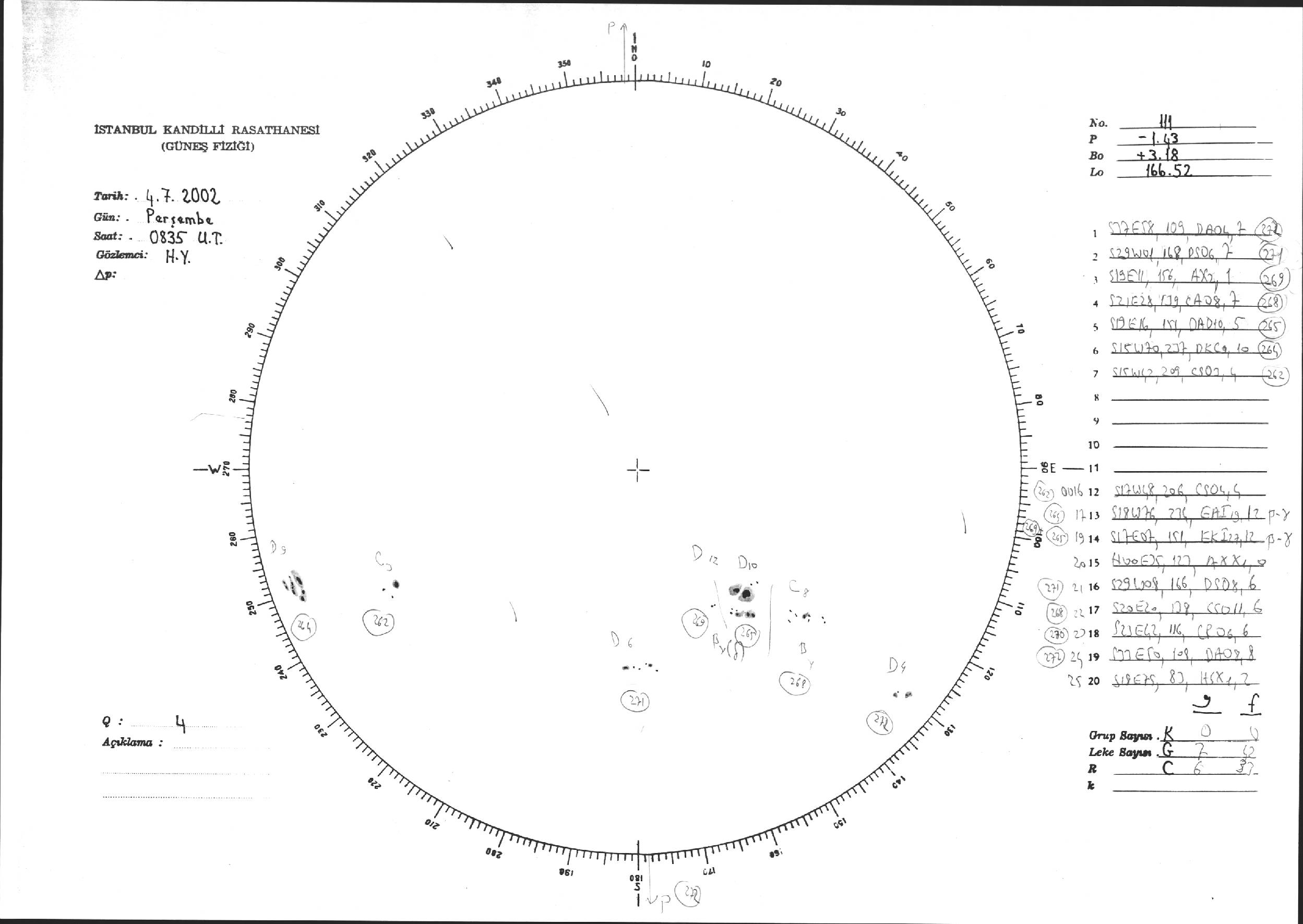 Güneş Lekesi Çizimi - 04.07.2002