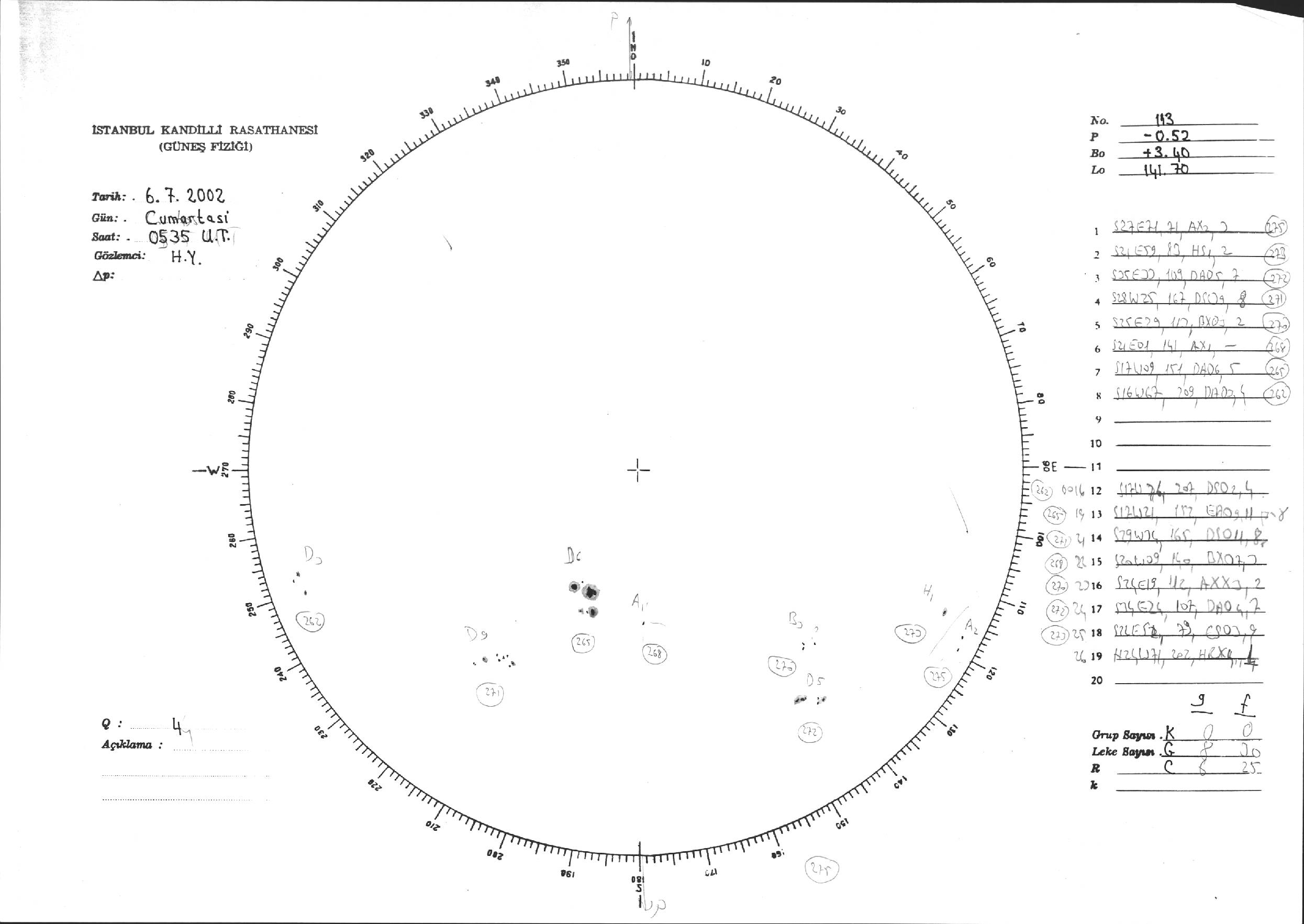 Güneş Lekesi Çizimi - 06.07.2002