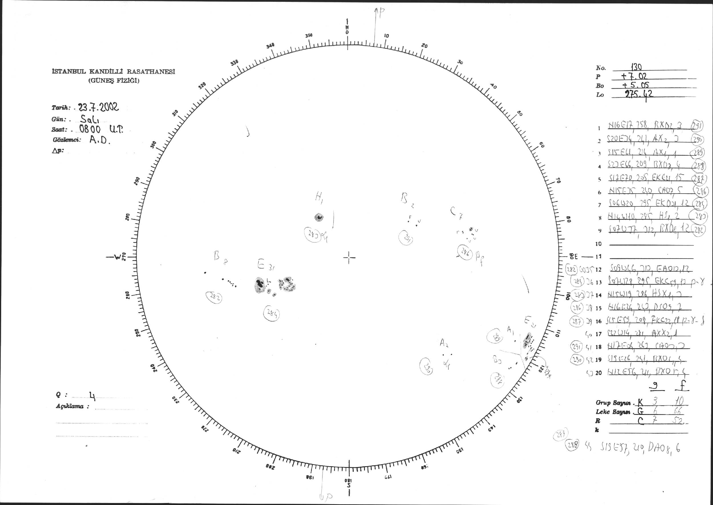 Güneş Lekesi Çizimi - 23.07.2002