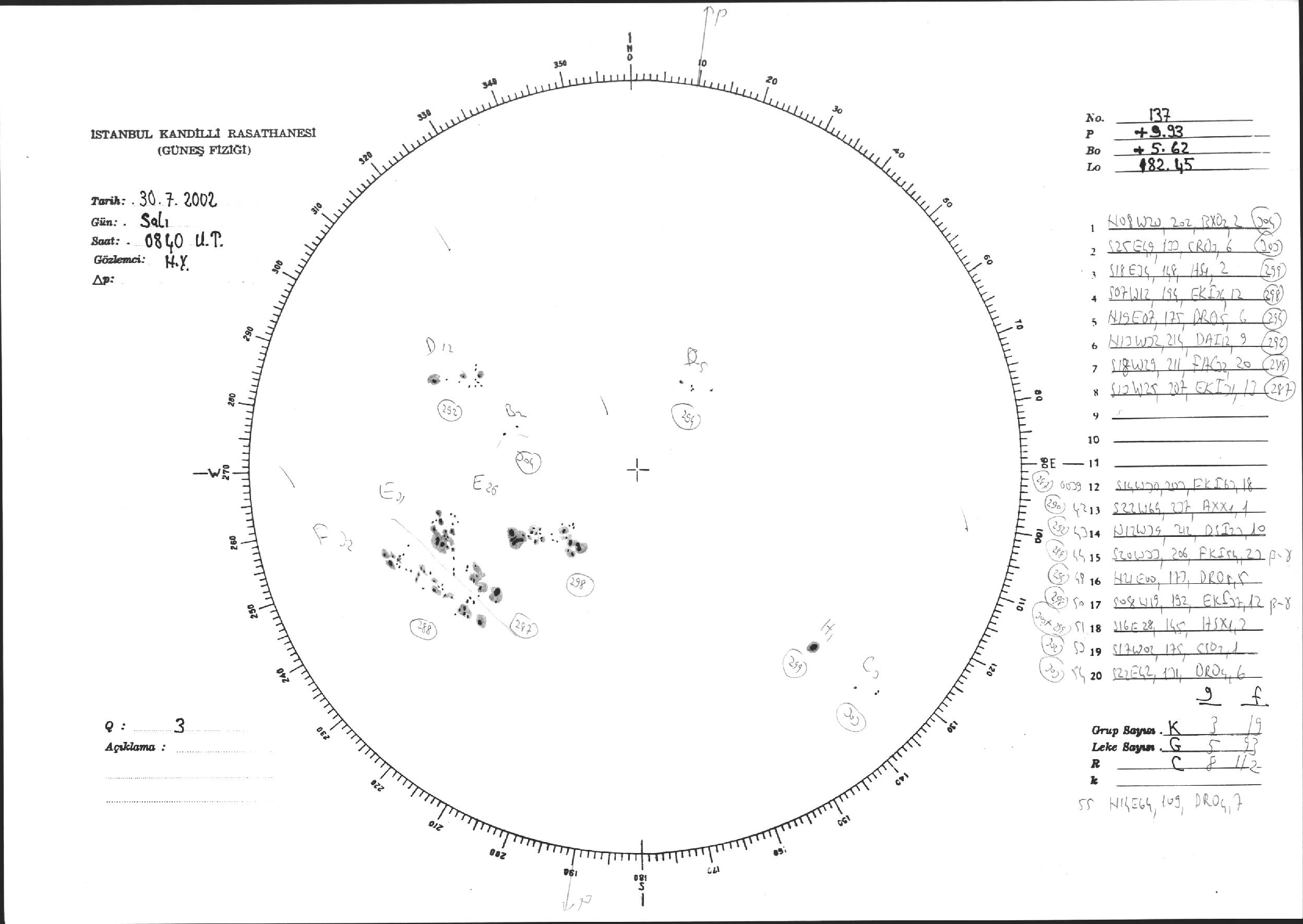 Güneş Lekesi Çizimi - 30.07.2002