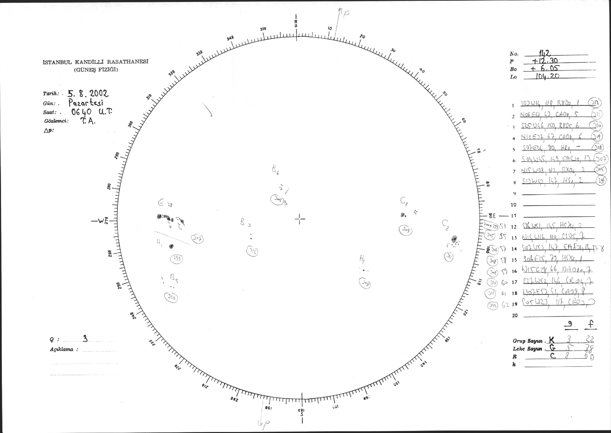 Güneş Lekesi Çizimi - 05.08.2002