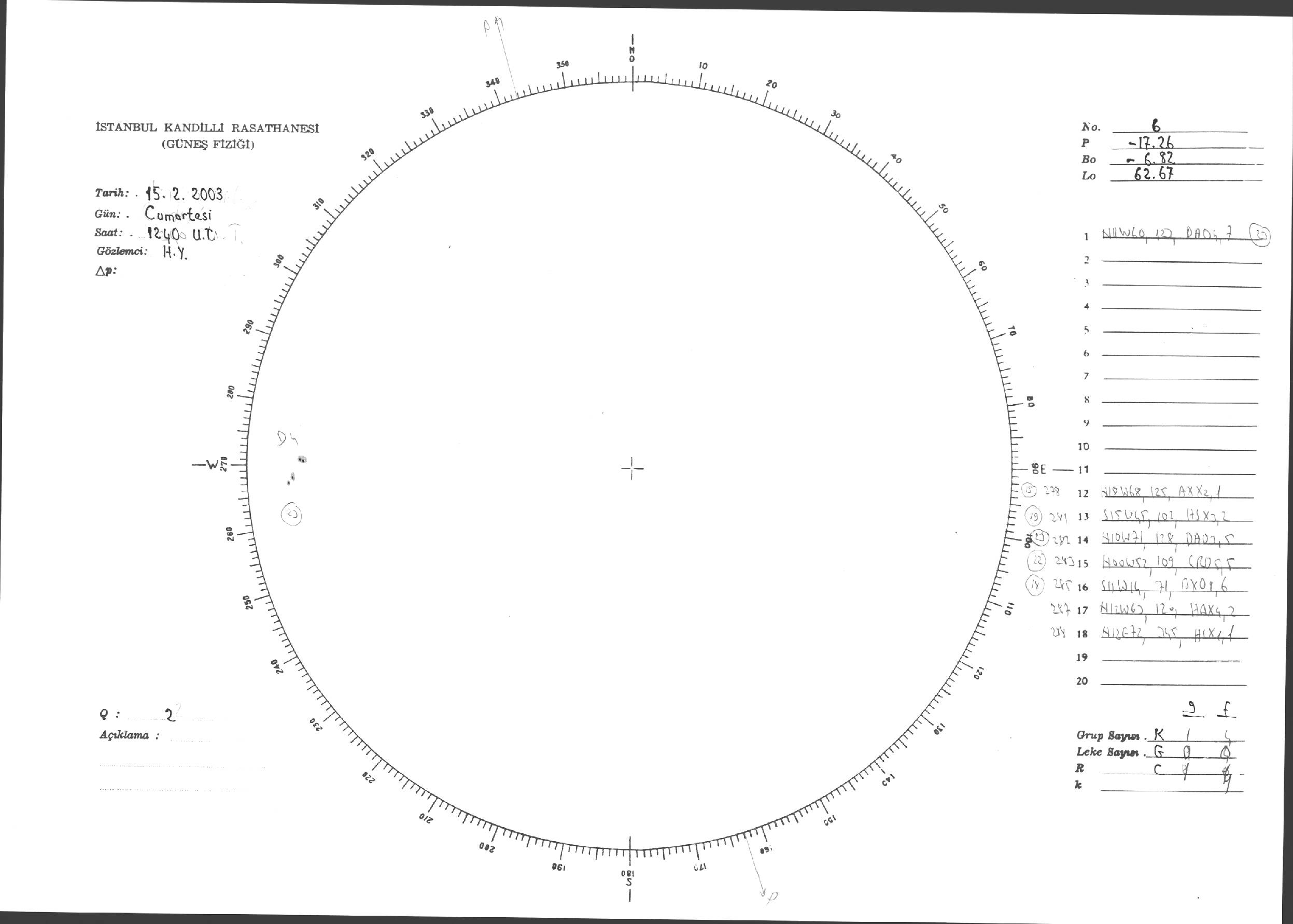Güneş Lekesi Çizimi - 15.02.2003